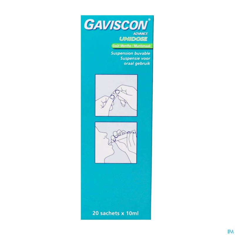 Gaviscon Advance Orale Susp. Munt Ud Zakje 20x10ml is een geneesmiddel : Lees de bijsluiter zorgvuldig. Niet langdurig gebruiken zonder medisch advies.