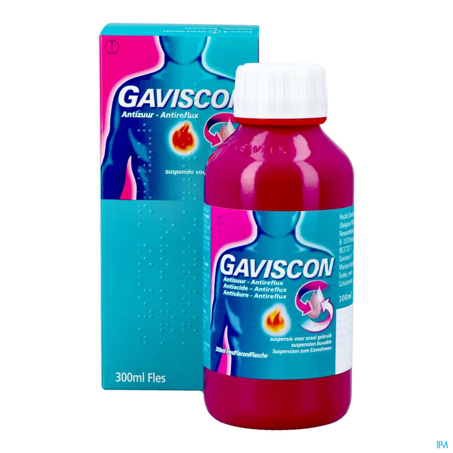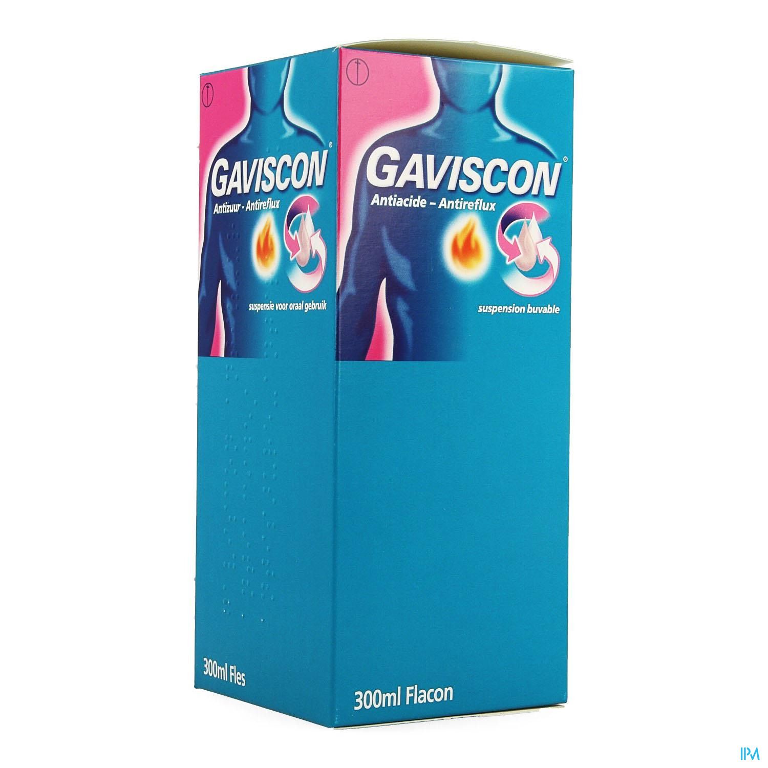 Gaviscon Antireflux Antizuur Orale Susp 300ml is een geneesmiddel : Lees de bijsluiter zorgvuldig. Niet langdurig gebruiken zonder medisch advies.