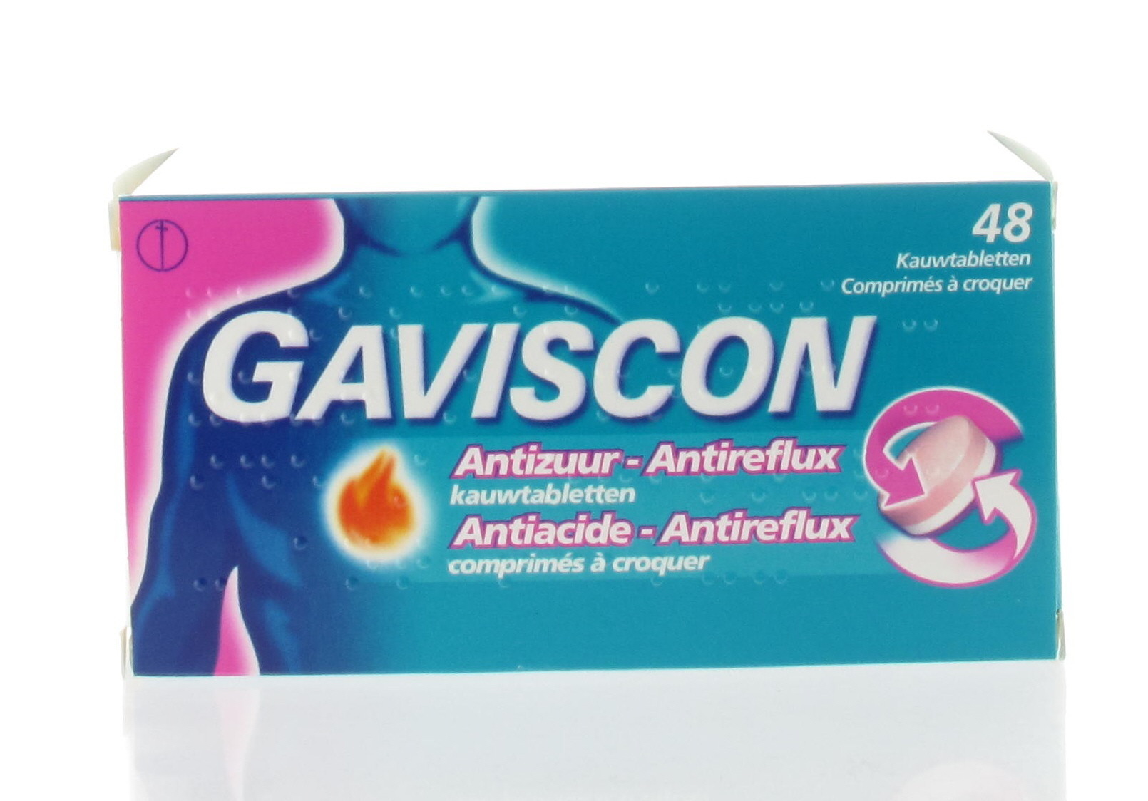 Gaviscon Antizuur-antireflux Kauwtabl 48 is een geneesmiddel : Lees de bijsluiter zorgvuldig. Niet langdurig gebruiken zonder medisch advies.