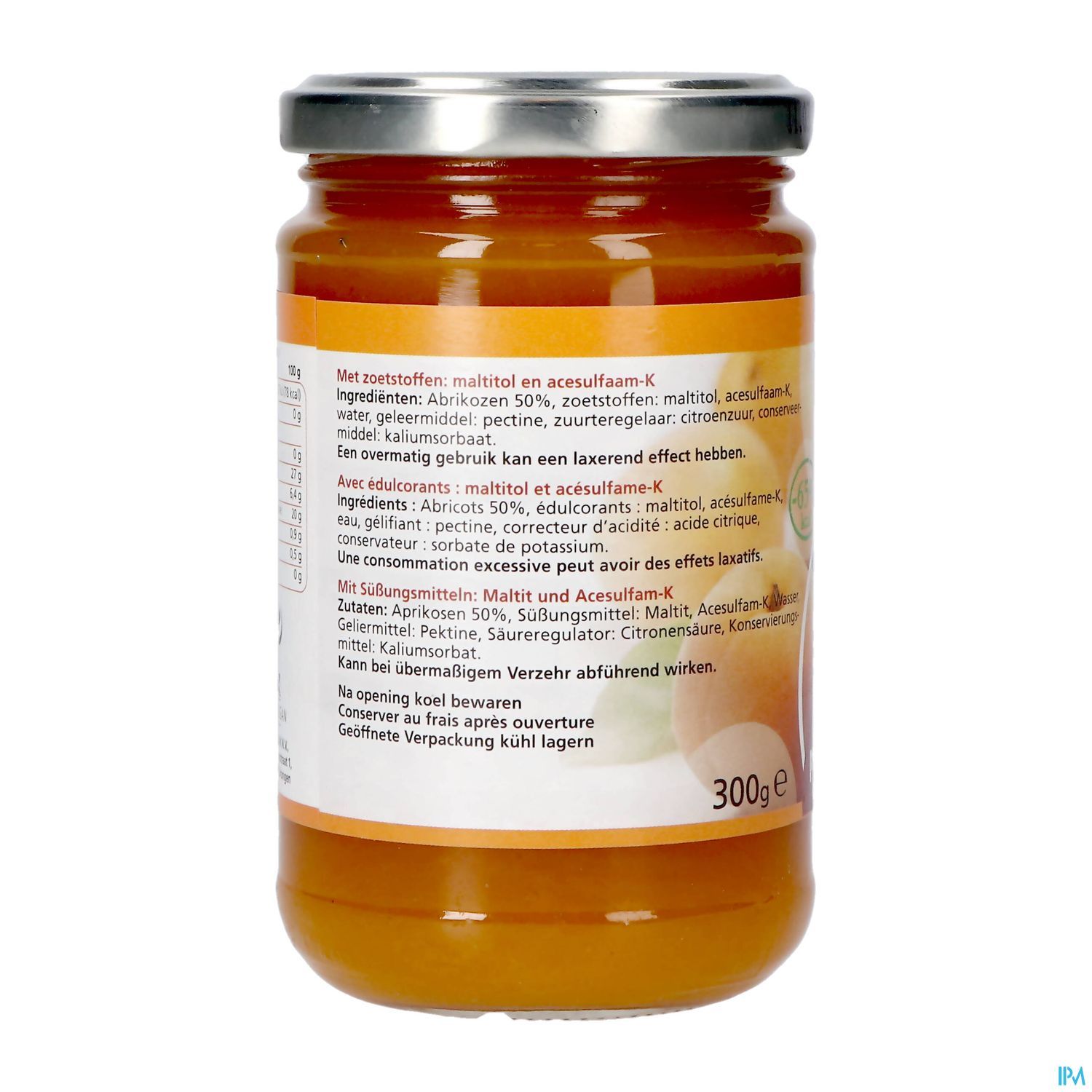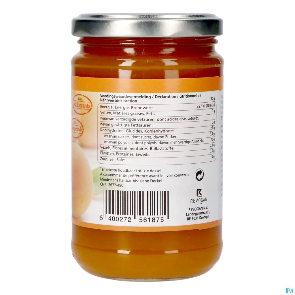 Confituur abrikoos, gezoet met maltitol en acésulfaam K.