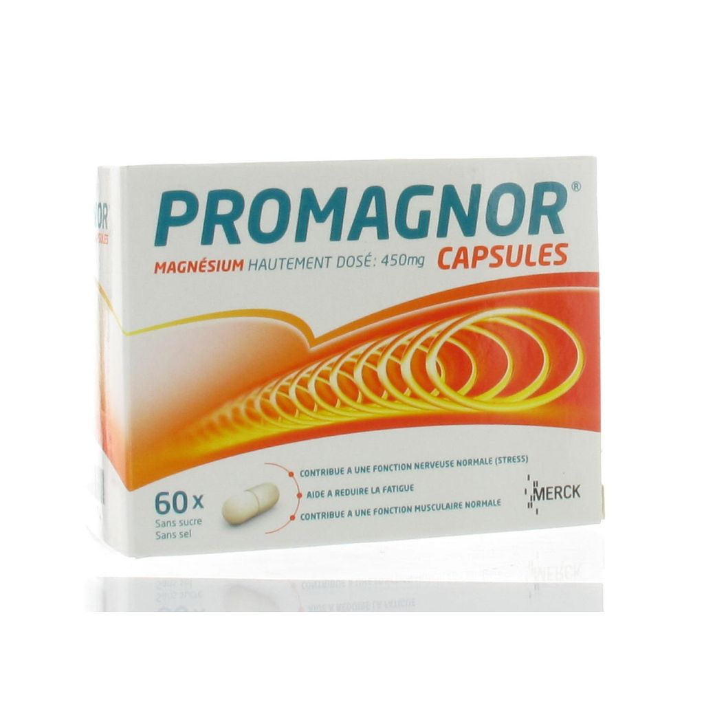 Promagnor® Capsules is een hoog gedoseerd magnesiumsupplement (450 mg). Dankzij de hoge dosering volstaat 1 capsule Promagnor® per dag. Magnesium draagt bij tot vermindering van vermoeidheid en een normale spier- en zenuwfunctie. Promagnor is beschikbaar in 5 vormen: capsules, zakjes, instant, kauwtabletten en bruistabletten.