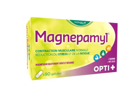 Magnepamyl Opti +® is een voedingssupplement op basis van verschillende zouten van magnesium, van taurine, van verscheidene vitamines van groep B en van vitamine D die een synergetische werking hebben in het organisme.