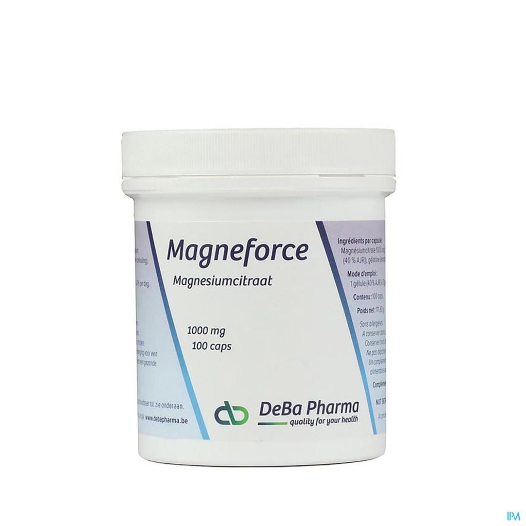 Magneforce bevat magnesiumcitraat als actieve stof. Magnesium is een mineraal waarvan een groot deel aanwezig is in onze botten en spieren. Magnesium is, net zoals calcium, een elektrolyt. Een belangrijk signaal van een magnesiumtekort zijn spierkrampen.