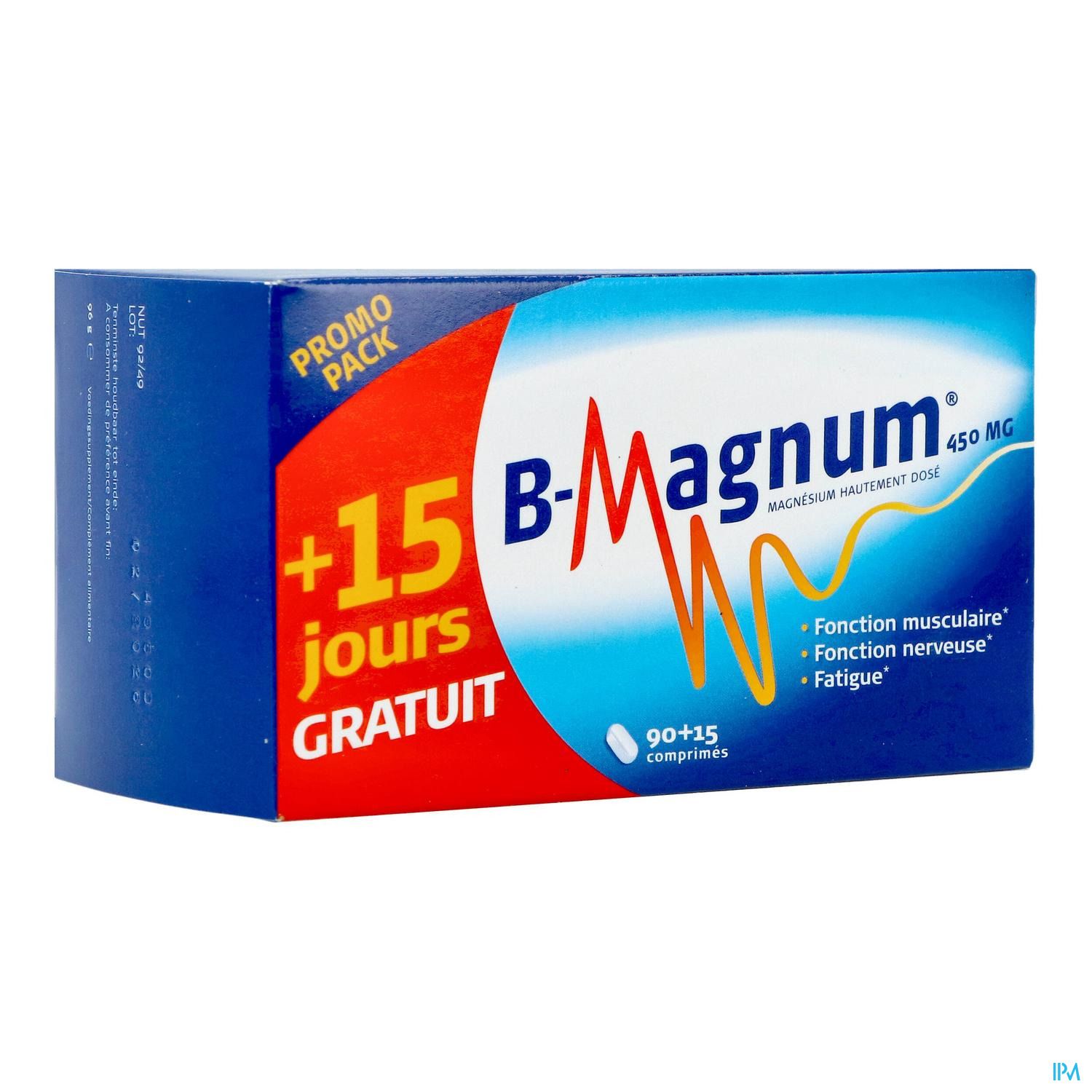 B-Magnum is een voedingssupplement met hoog gedoseerd magnesium; 450mg magnesium per tablet. B-Magnum kan gebruikt worden bij spierkrampen, vermoeidheid, zwangerschap, intensief sporten, stress. Het bestanddeel van B-Magnum; magnesium is 1 van de mineralen die onmisbaar zijn voor ons lichaam.