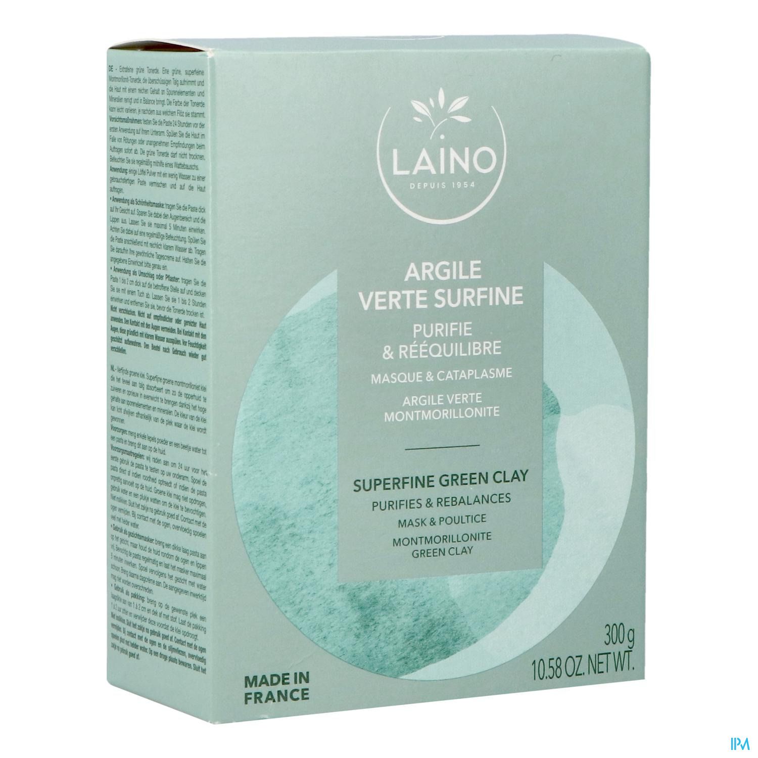 Deze Laino Montmorilloniet groene surfine klei absorbeert overtollig talg om de opperhuid te zuiveren en weer in balans te brengen, dankzij de rijkdom aan sporenelementen en mineralen.