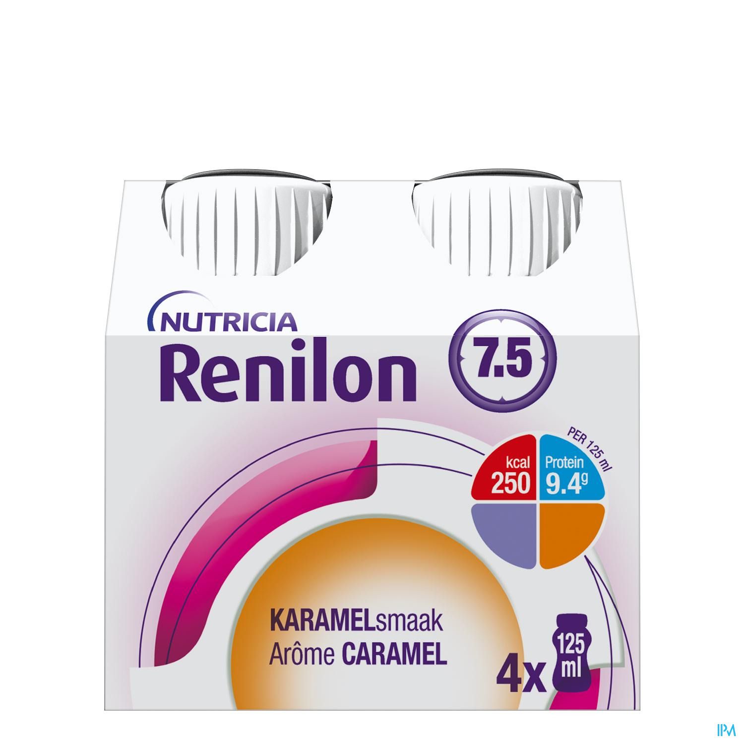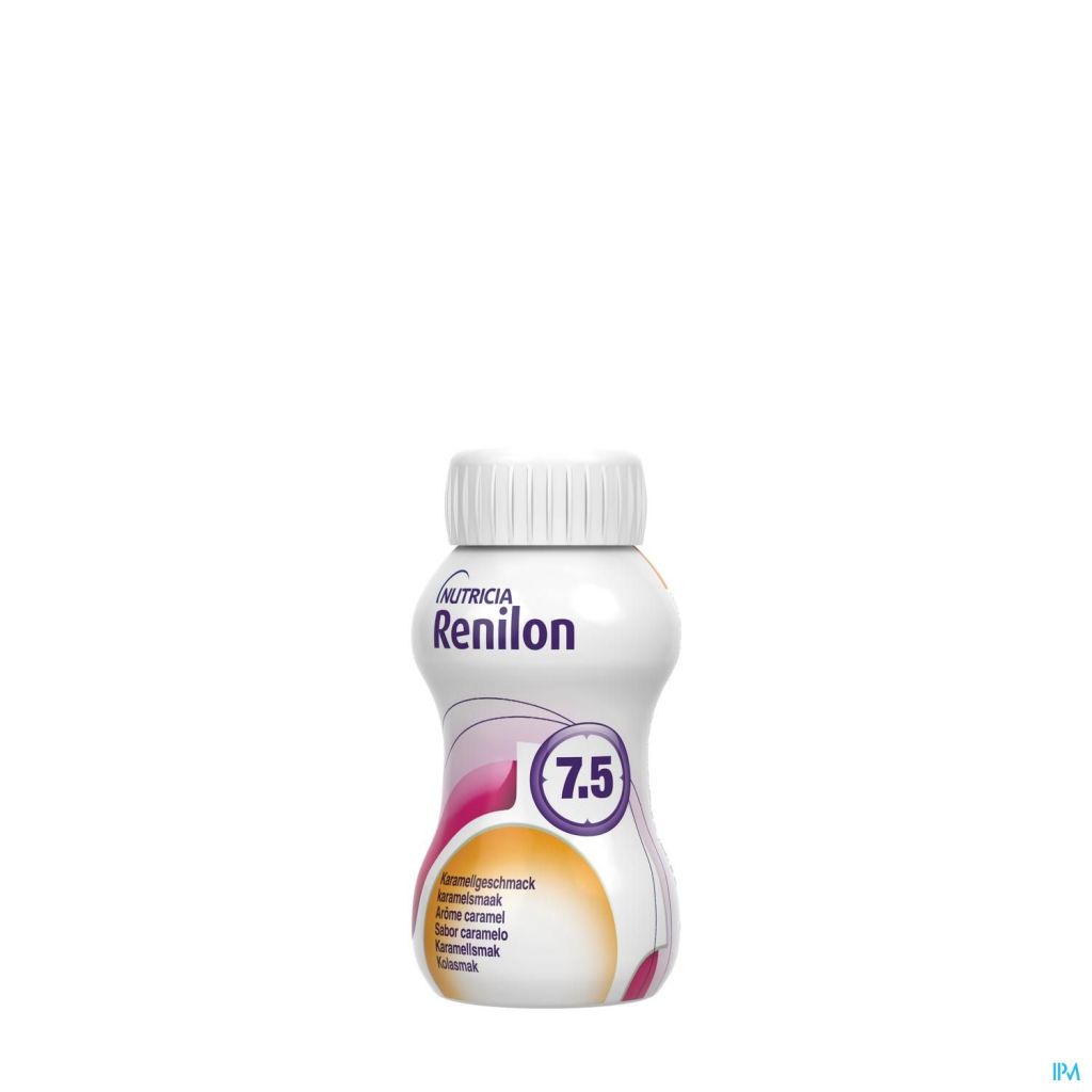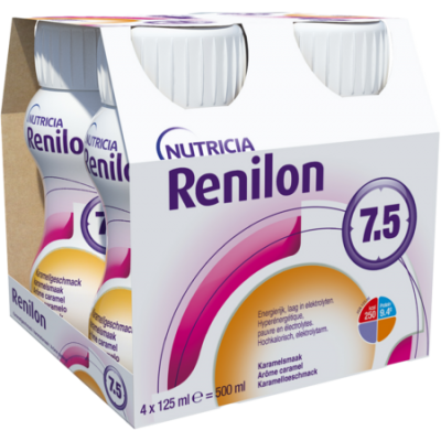Het levert in een klein flesje (125 ml) een normale hoeveelheid eiwit en heeft een verlaagd mineraalgehalte. Renilon 7.5 is fosfaatarm waardoor er geen extra fosfaatbinders nodig zijn. Het is gluten- en lactosevrij. Bevat melk, soja. Renilon 7.5 is een voeding voor medisch gebruik speciaal ontwikkeld voor nierpatiënten die dialyse nodig hebben. Medische drinkvoeding wordt door uw arts of diëtist geadviseerd bij ziektegerelateerde ondervoeding als aanvulling op de dagelijkse (normale) voeding.