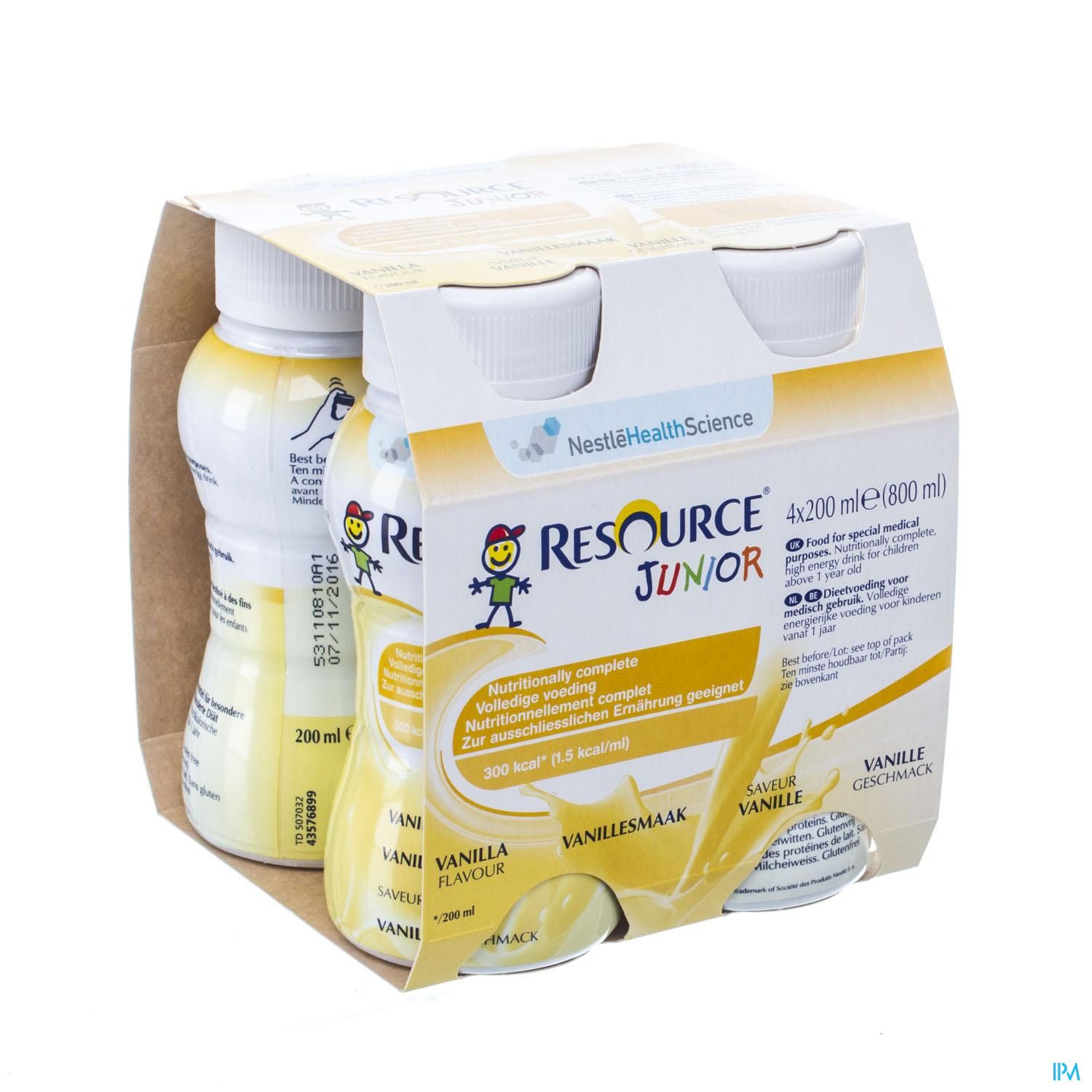 Resource Junior is een energierijke (1.5 kcal/ml) voeding, voor kinderen vanaf 1 jaar. Dieetvoeding bij ondervoeding of risico op ondervoeding. Voeding voor medisch gebruik.