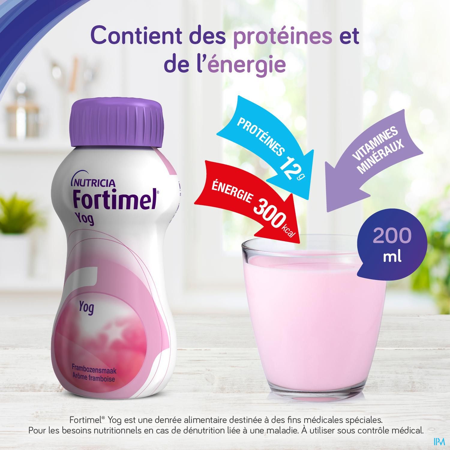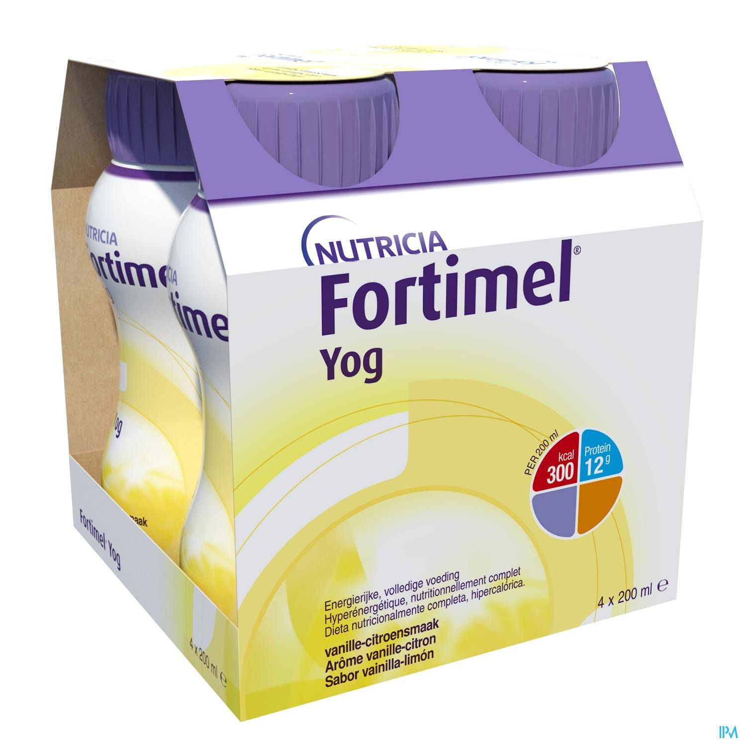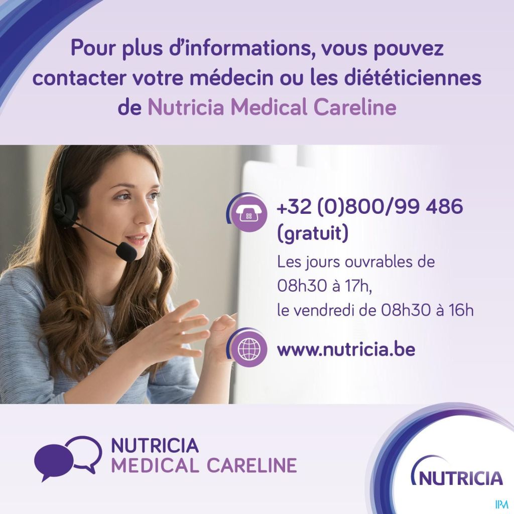 Water, glucosesiroop, wei-eiwit (van koemelk), suiker, plantaardige oliën (koolzaadolie, zonnebloemolie), lactose (van melk), zuurteregelaar (citroenzuur), stabilisator (pectine), natriumcitraat, kaliumdiwaterstoffosfaat, aroma's, kaliumdiwaterstoffosfaat, kaliumcitraat, cholinechloride, carotenoïden (bevat soja)(β-caroteen, luteïne, lycopeen oleohars uit tomaten), natriumchloride, magnesiumhydroxide, natrium-L-ascorbaat, calciumhydroxide, natriumfluoride, ijzerlactaat, zinksulfaat, nicotinamide, kleurstof (curcumine), kopergluconaat, retinylacetaat, mangaansulfaat, DL-α-tocoferylacetaat, calcium D-pantothenaat, natriumseleniet, D-biotine, pteroylmonoglutaminezuur, cholecalciferol, pyridoxinehydrochloride, thiaminehydrochloride, kaliumjodide, riboflavine, fyllochinon, chroomchloride, natriummolybdaat.