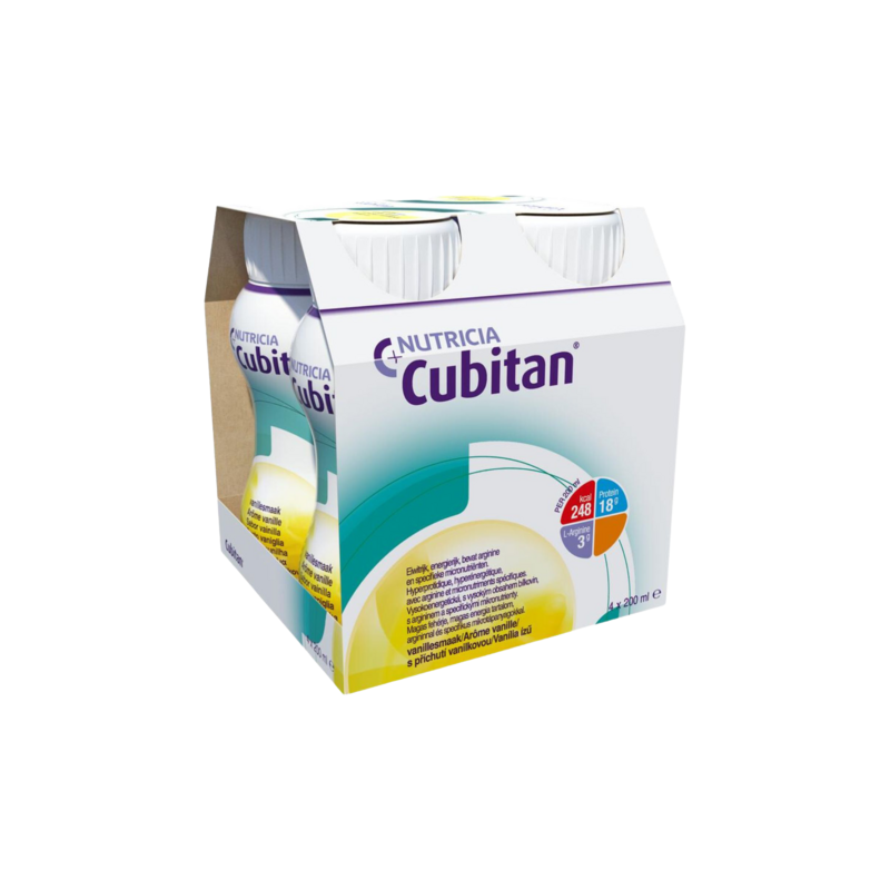 Cubitan is een eiwitrijke, energierijke, kant-en-klare drinkvoeding. Het levert specifieke voedingsstoffen zoals arginine, energie, vitaminen en mineralen om mogelijke voedingstekorten aan te vullen.