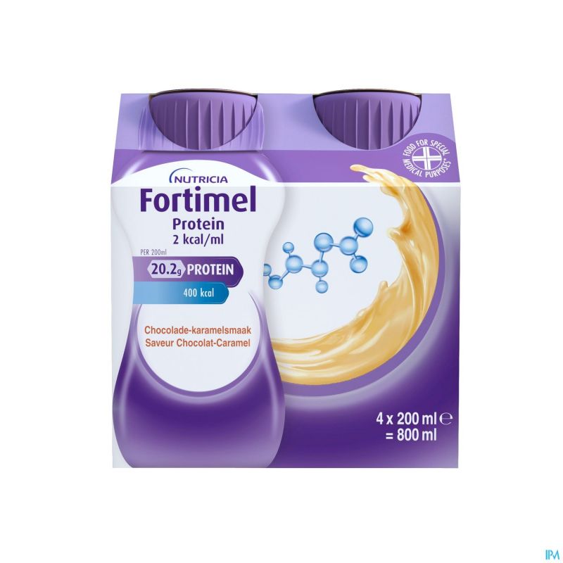 Voeding voor medisch gebruik. Dieetvoeding bij ziektegerelateerde ondervoeding. Fortimel Protein 200 ml is een eiwitrijke en energierijke drinkvoeding. Glutenvrij.