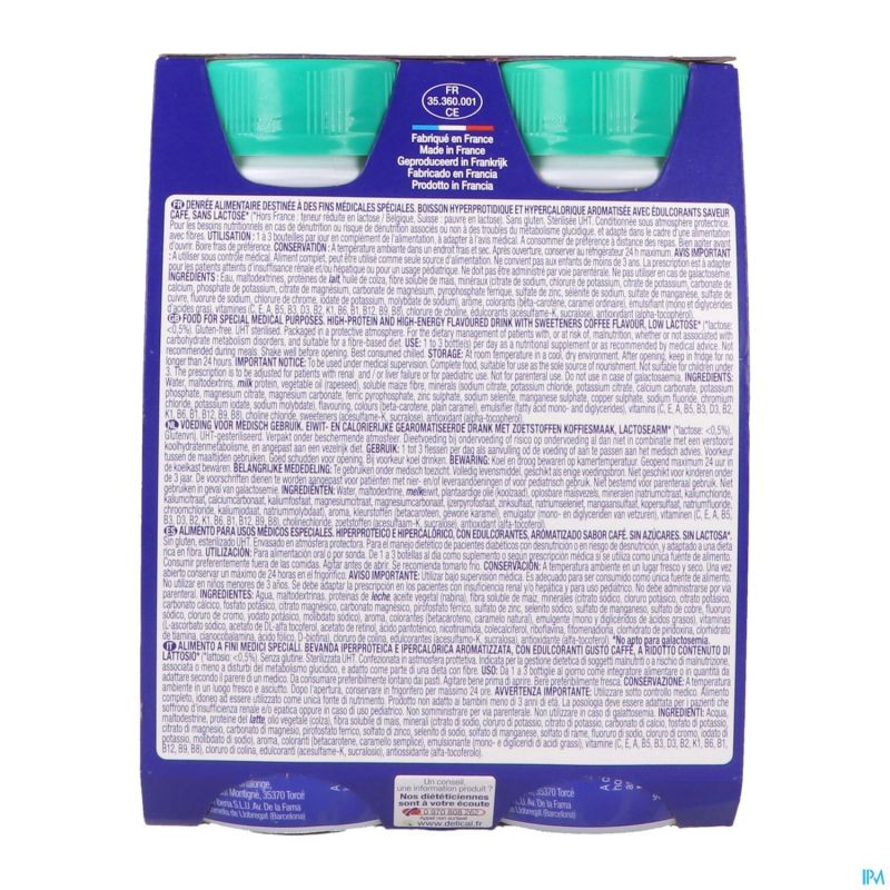 Water, maltodextrine, melkeiwit, plantaardige olie (raapzaad), oplosbare maïsvezels, mineralen (natriumcitraat, kaliumchloride, kaliumcitraat, calciumcarbonaat, kaliumfosfaat, magnesiumcitraat, magnesiumcarbonaat, ijzerpyrofosfaat, zinksulfaat, natriumseleniet, mangaansulfaat, kopersulfaat, natriumfluoride, chroomchloride, kaliumjodaat, natriummolybdaat), aroma, kleurstof (bètacaroteen, gewone karamel), emulgator (mono- en diglyceriden van vetzuren), vitaminen (C, E, A, B5, B3, D3, B2, K1, B6, B1, B12, B9, B8), cholinechloride, zoetstoffen (acesulfaam-K, sucralose), antioxidant (alfa-tocoferol).