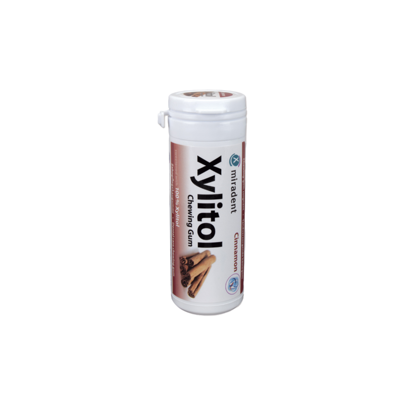 Xylitol Kauwgom met kaneelsmaak van Miradent is een tandverzorgende kauwgom met medische eigenschappen* en vormt een fantastische aanvulling op de dagelijkse poetsbeurt van je tanden. Het geheim zit 'm in de 100% natuurlijke Xylitol. Xylitol is een natuurlijke zoetstof afkomstig uit specifieke groenten en fruit zoals bloemkool, pruimen, aardbeien en frambozen.