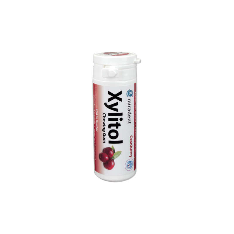 Xylitol Kauwgom met veenbessmaak van Miradent is een tandverzorgende kauwgom met medische eigenschappen* en vormt een fantastische aanvulling op de dagelijkse poetsbeurt van je tanden. Het geheim zit 'm in de 100% natuurlijke Xylitol. Xylitol is een natuurlijke zoetstof afkomstig uit specifieke groenten en fruit zoals bloemkool, pruimen, aardbeien en frambozen.