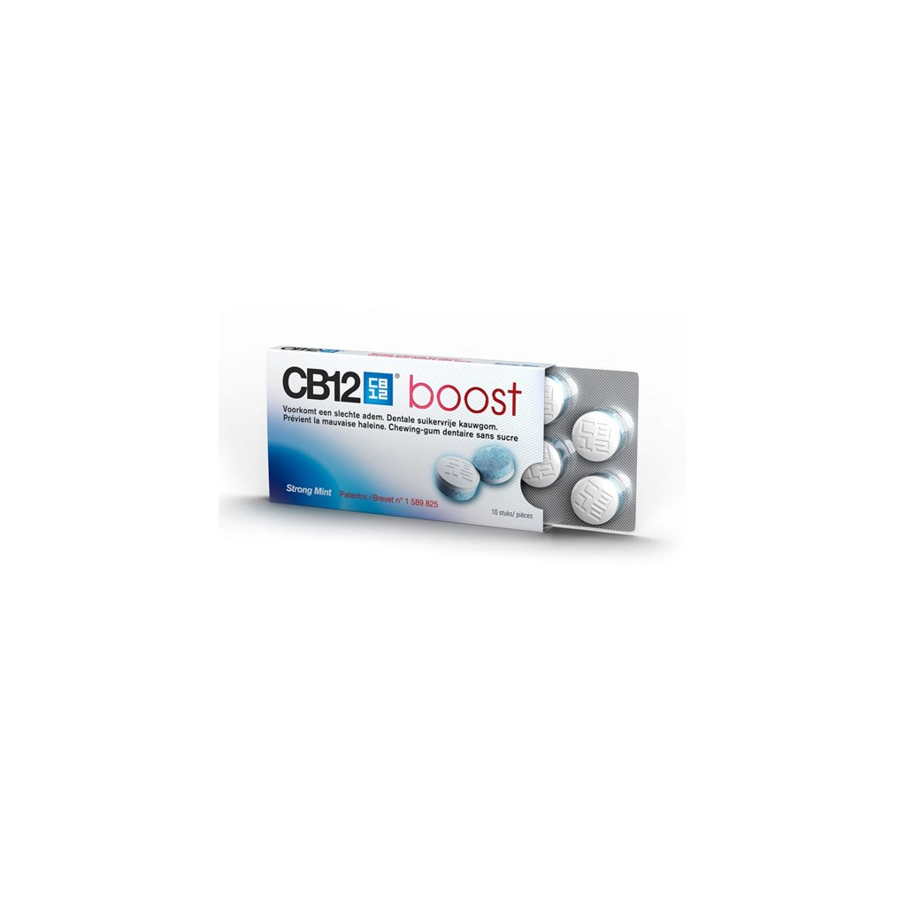 CB12 boost is een unieke, suikervrije kauwgom met zink, fluoride en xylitol. Dankzij zijn gepatenteerde technologie garandeert het een frisse adem en een gezonde mond: