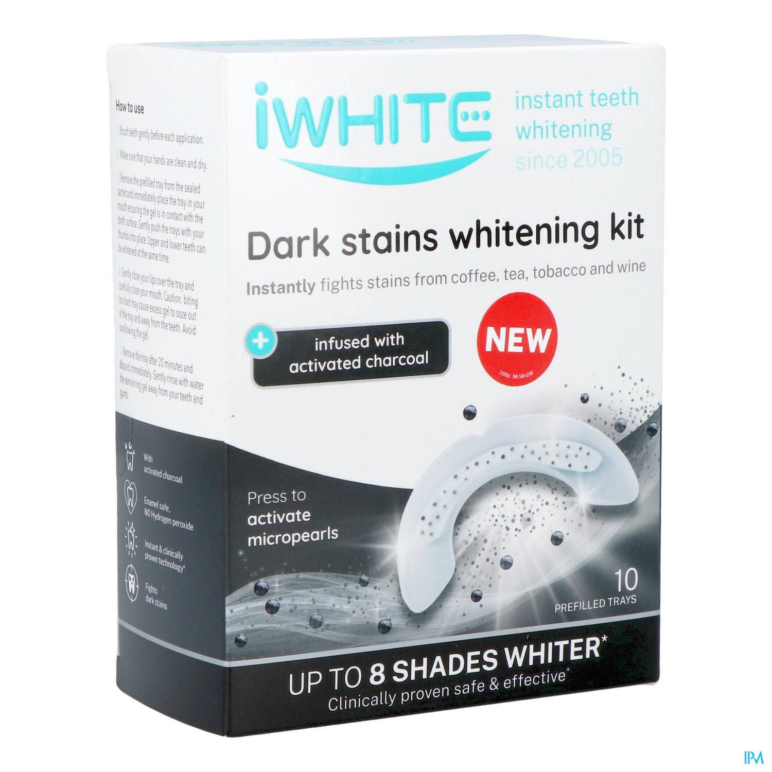 Het drinken van wijn, koffie of thee en roken kan helaas vlekken op de tanden veroorzaken. Omdat niemand vlekken op zijn tanden wil hebben, heeft iWhite een unieke whitening kit ontwikkeld, de iWhite Dark Stains kit met geactiveerde houtskool. Naast de onmiddellijke werking op koffie-, wijn-, thee- en tabaksvlekken, voorkomt deze kit het ontstaan van nieuwe vlekken.