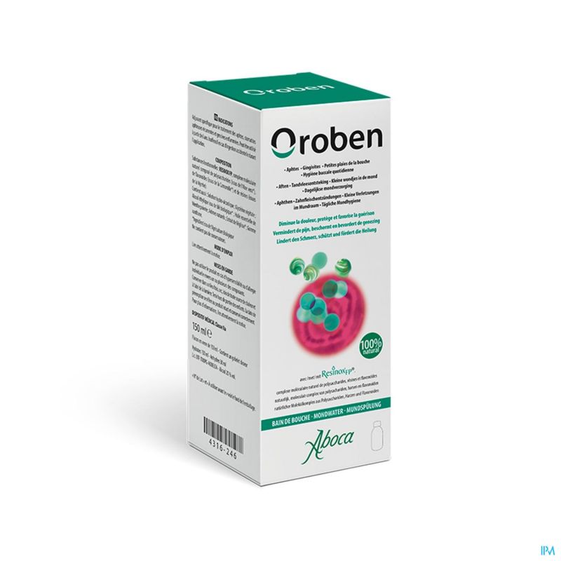 Oroben Mondwater is een product dat de pijn vermindert, beschermt en de genezing bevordert van aften, een steeds terugkerende ontsteking van het mondslijmvlies, ontstoken tandvlees en kleine wondjes in de mond veroorzaakt door bijvoorbeeld tandheelkundige behandelingen of door het gebruik van beugels en kunstgebitten.