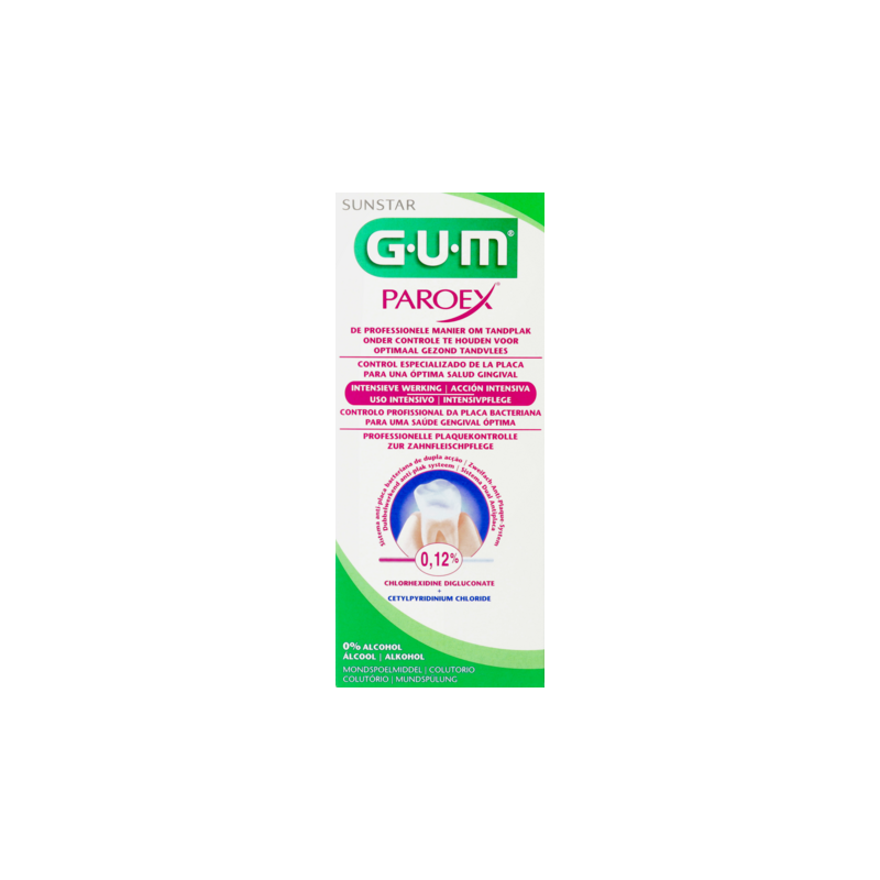 | Een speciaal geformuleerd mondspoelmiddel dat helpt de opbouw van tandplak te verminderen. Tevens helpt het gevoelig tandvlees te verzachten en tandvlees gezond te houden. Het is geschikt voor zowel voor als na een operatie in de mond, het trekken van een kies of tand en bij het plaatsen van een implantaat. De dubbelwerkende ontsmettende formule bevat Chloorhexidine Digluconaat 0,12%, dat langdurig schadelijke bacteriën verwijdert en de groei ervan voorkomt. Daarnaast bevat het Cetylpyridinium Chloride (CPC), een antibacterieel bestanddeel dat de werking van chloorhexidine versterkt en de giftige stoffen van bacteriën beter tegengaat. |