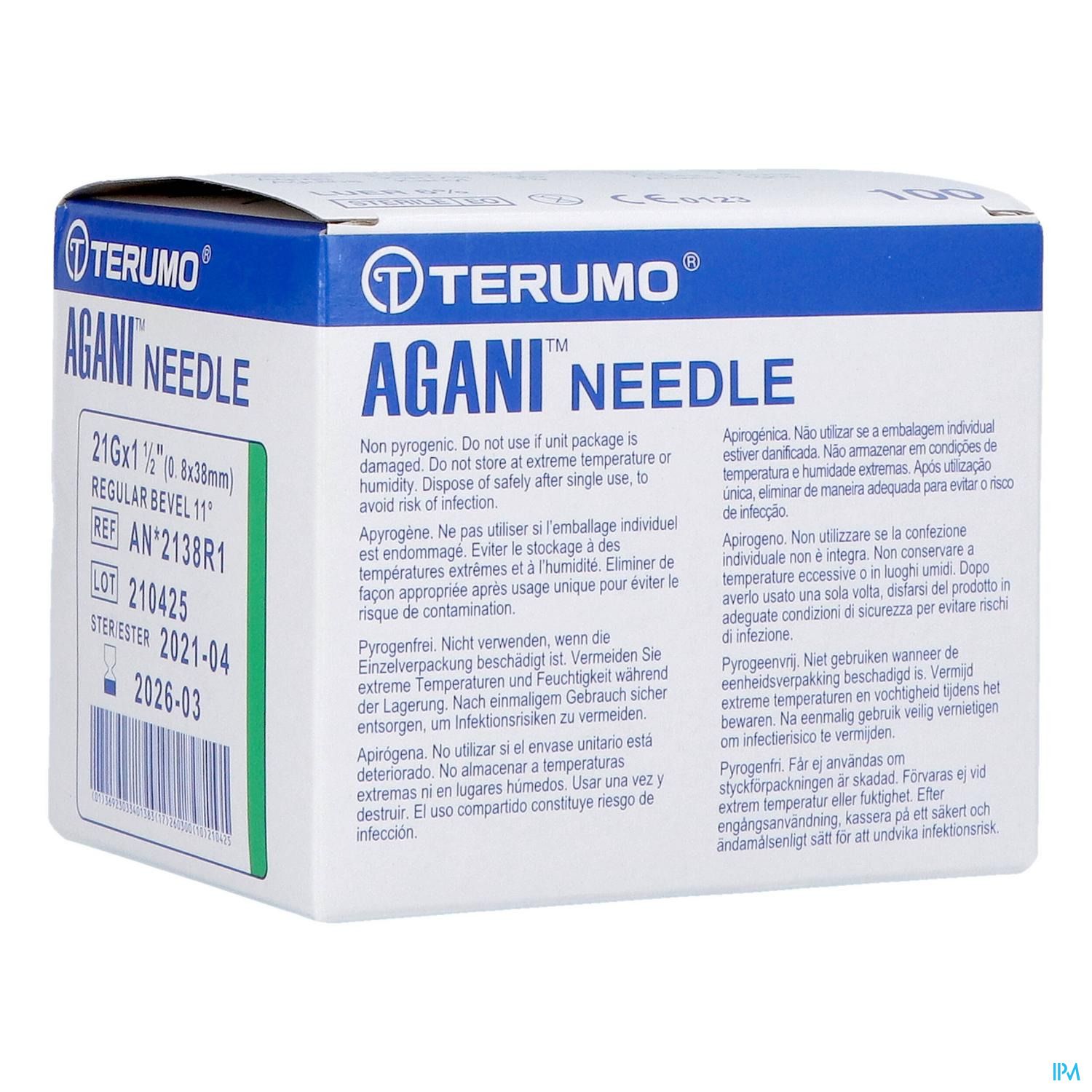 U kan terumo naald agani 21g 1 1/2 rb groen 100, , geleverd door terumo bestellen op Pharmacodel, uw online apotheek.