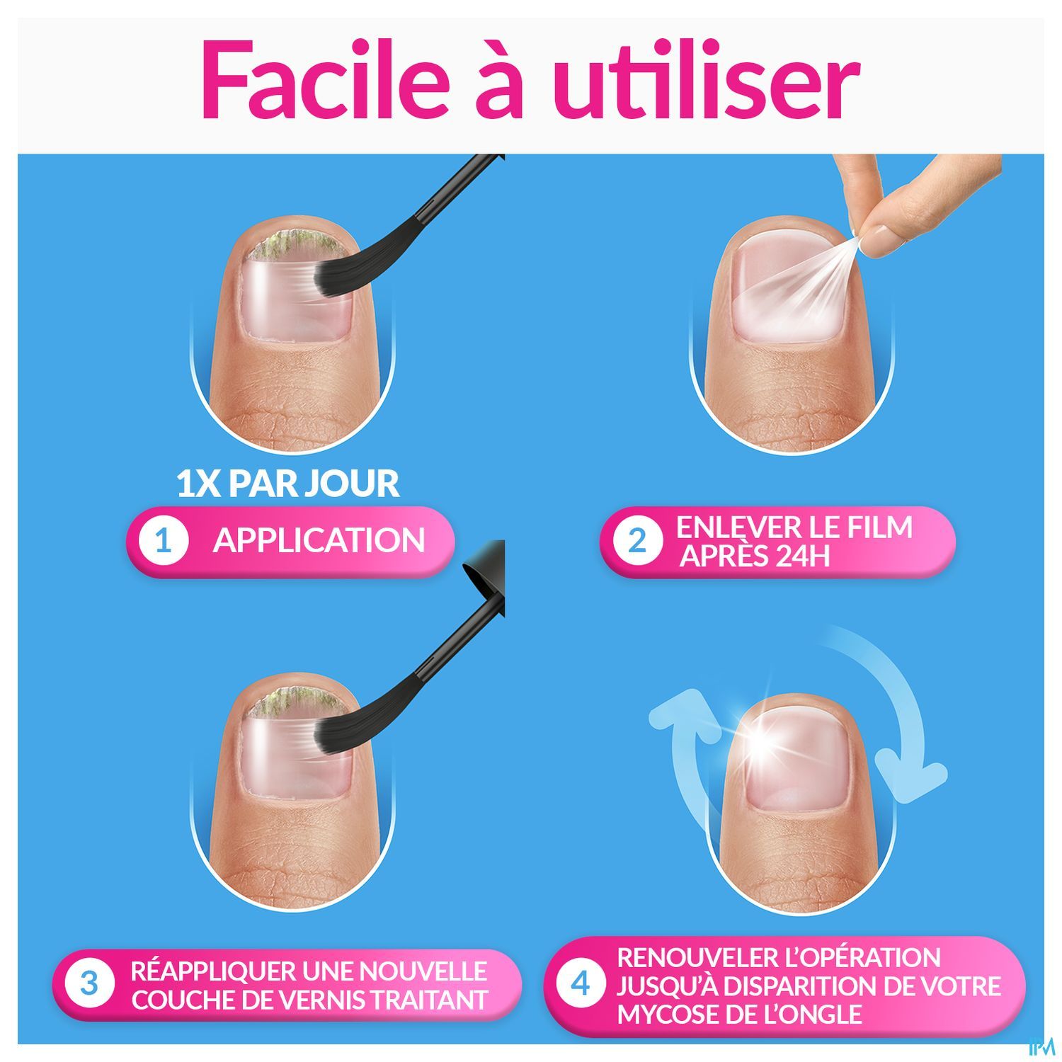 Excilor® FORTE één keer per dag aanbrengen.
