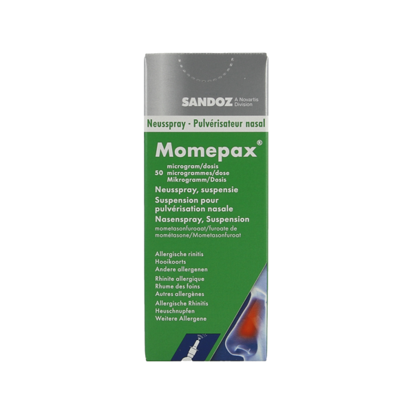 Momepax 50mcg Neusspray 1x140 Dosissen is een geneesmiddel : Lees de bijsluiter zorgvuldig. Niet langdurig gebruiken zonder medisch advies.