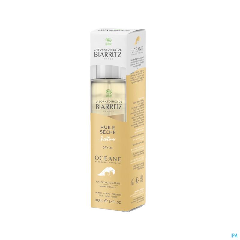 Océane dry oil is een echte "plezierbehandeling": de heerlijke geur en de niet-vette textuur die de huid en het haar satijnzacht maakt, maken het aanbrengen ervan tot een moment van welzijn. Mariene ingrediënten (bruin zeewier en zeevenkel) en vier biologische plantaardige oliën (camelina, zonnebloem, pruim en hennep) worden gecombineerd om de huid en het haar te voeden en te verbeteren. De huid is zacht en zijdeachtig. Het haar is soepel en glanzend.