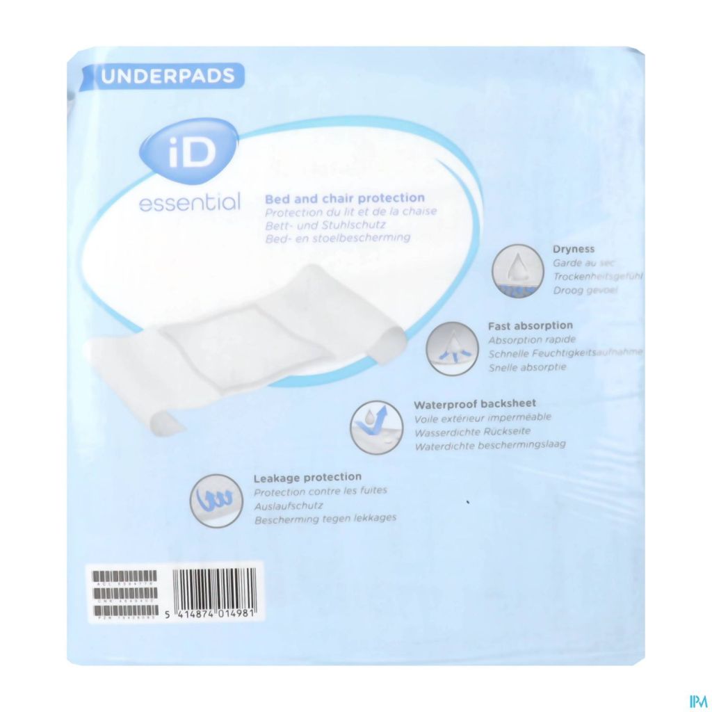 De iD Essential Underpads bieden betrouwbare droogheid met snelle absorptie, zodat u zich de hele dag en nacht comfortabel voelt. Met een waterdichte achterkant bieden ze effectieve bescherming tegen lekkages, waardoor uw oppervlakken droog en schoon blijven. Ontworpen voor dagelijks gebruik, bieden deze onderleggers gemoedsrust met hun absorberende kern die vocht vasthoudt. Ideaal voor bed, stoel of meubels, ze bieden de extra bescherming die u nodig heeft.
