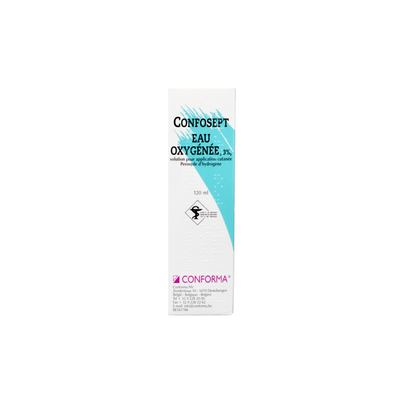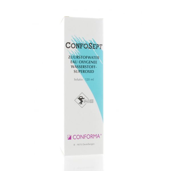 Confosept Zuurstofwater 1 X 120ml is een geneesmiddel : Lees de bijsluiter zorgvuldig. Niet langdurig gebruiken zonder medisch advies.