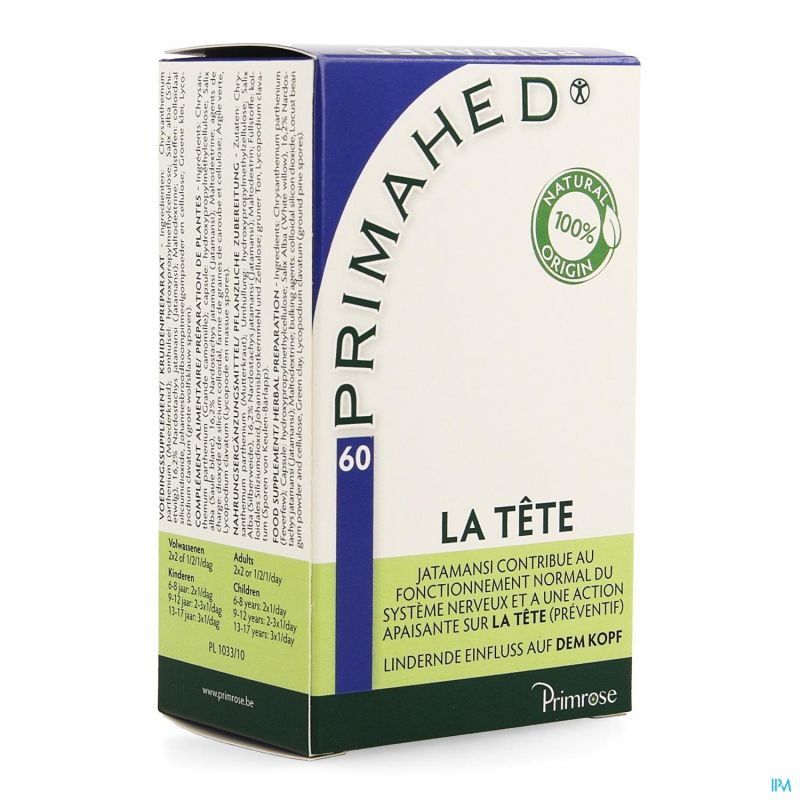 Primahed is een voedingssupplement dat ontwikkeld is op basis van jarenlange professionele ervaring in defytotherapie. Het bevat extracten en poeders van 3 planten: moederkruid, jatamansi en schietwilg. De Latijnse benaming van moederkruid is Chrysanthemum parthenium en het werd al door Dioscorides aangeraden (40-90 na Christus).