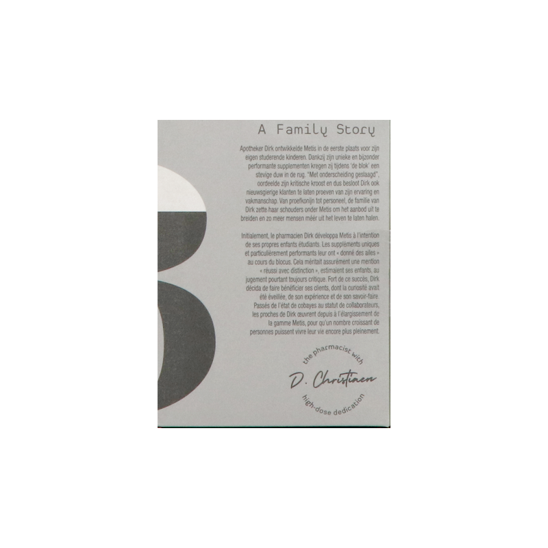 - Indien u reeds medicatie gebruikt en/of therapieën ondergaat, gelieve het gebruik van Metis supplementen dan steeds eerst met uw behandelend arts te bespreken.