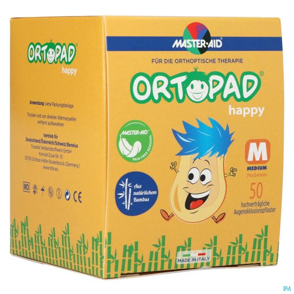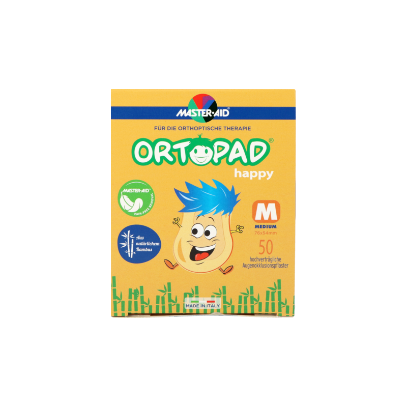 Oogocclusiepleister voor orthoptische therapie. ORTOPAD® HAPPY is vervaardigd van zacht katoenen vlies voor hoog draagcomfort. Lucht doorlatend en met hypoallergene hot melt-lijm. Nieuwe anatomische vorm met inkepingen aan de neus voor perfekt aanpassen aan iedere gelaatsvorm. Lichtdichte en dunne binnenlaag voor betrouwbare occlusie. 5 nieuwe grote motieven voor jongens en meisjes, zonder glitter.