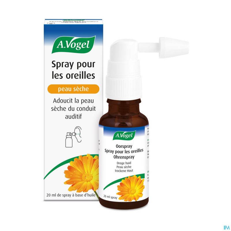 A.Vogel Oorspray Droge Huid is een spray op basis van kokosnootolie, zonnebloemolie en calendula-extract.