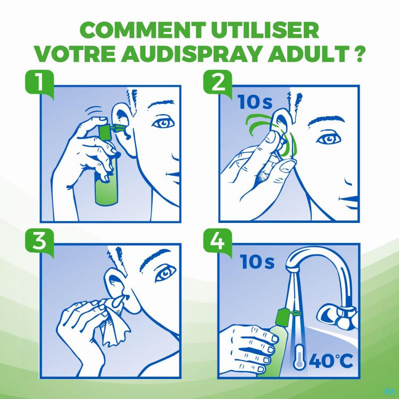 Audispray Adult is een oorspray om de vorming van oorsmeerproppen te voorkomen die vanaf 12 jaar kan worden gebruikt.