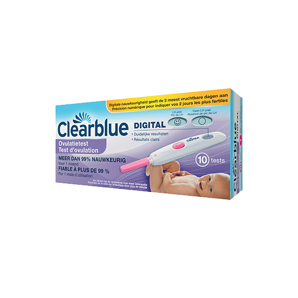 Meer dan 99% nauwkeurig bij het bepalen van je twee meest vruchtbare dagen – met onmiskenbaar duidelijke digitale resultatenIn elke cyclus zijn er slechts enkele dagen waarop een vrouw vruchtbaar is. Als je dus zwanger probeert te worden, is het erg belangrijk dat je op deze dagen seks hebt. De Clearblue Digital Ovulatietest helpt je je kansen op een natuurlijke zwangerschap te verhogen door je twee meest vruchtbare dagen elke cyclus te bepalen door de wijzigingen in een belangrijk vruchtbaarheidshormoon te meten: luteïniserend hormoon (LH). Het is nauwkeuriger dan kalender- en temperatuurmethodes en geeft je onmiskenbare duidelijke resultaten op een digitaal scherm.
