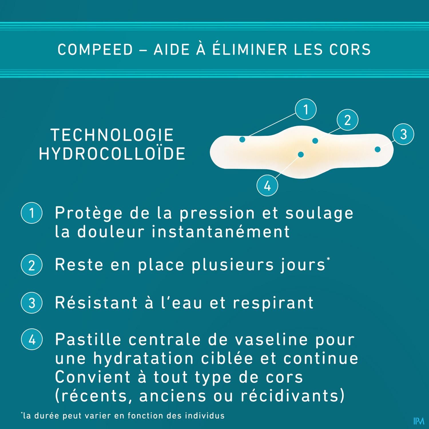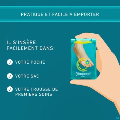 5. Voor de beste resultaten gebruikt u COMPEED® totdat de behandelde huid zachter is geworden en hersteld is. Gebruik zo nodig om te verzachten of om de opbouw te voorkomen van verharde huid die likdoorns vormt.