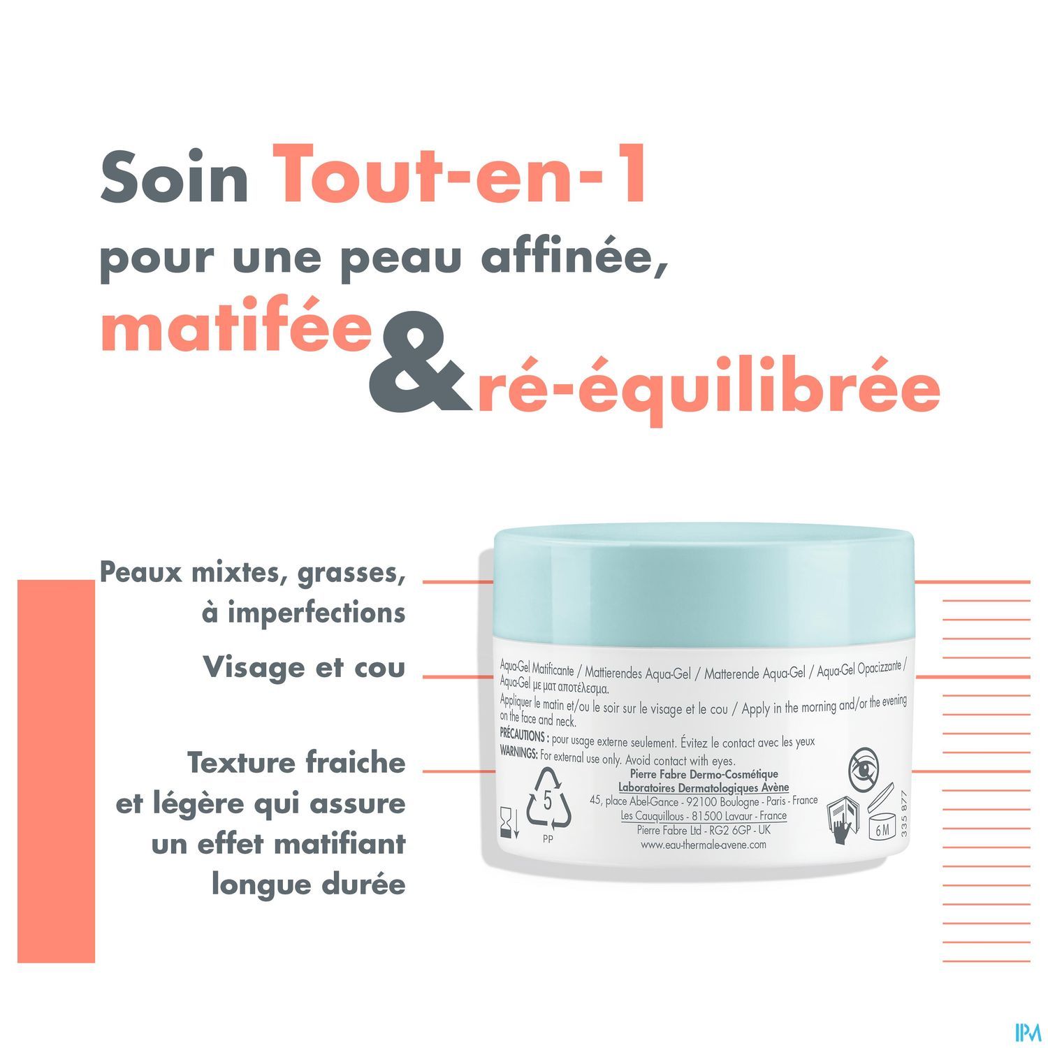 De met monolaurine verrijkte formule vermindert het glimmen onmiddellijk met 50% zonder de huid uit te drogen of te schaden, dankzij de toevoeging van verzachtend Thermaal Water van Avène. De ultralichte, zachte textuur vernauwt onmiddellijk de poriën en hydrateert de huid 24 uur lang² en laat de huid de hele dag lang prettig en comfortabel aanvoelen³.