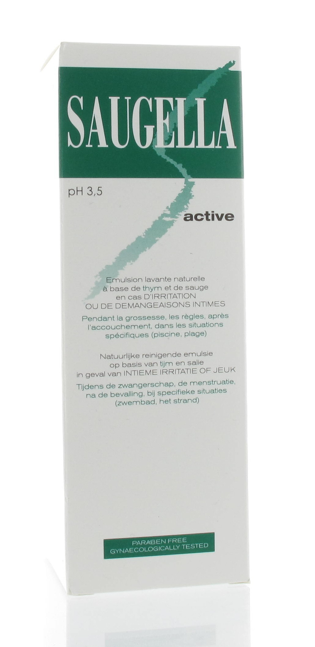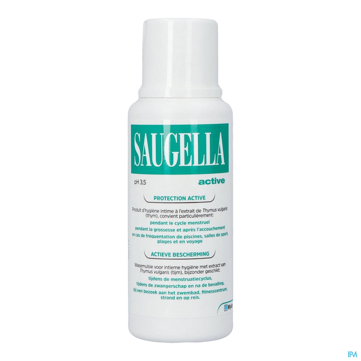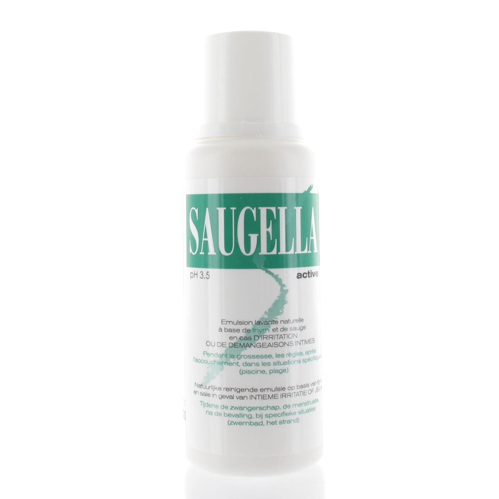 Saugella Active is een natuurlijke reinigende emulsie, zonder zeep, op basis van salie- en tijmextracten en is speciaal ontwikkeld om jeuk en irritaties snel te verlichten met respect voor het intiem vrouwelijk evenwicht.