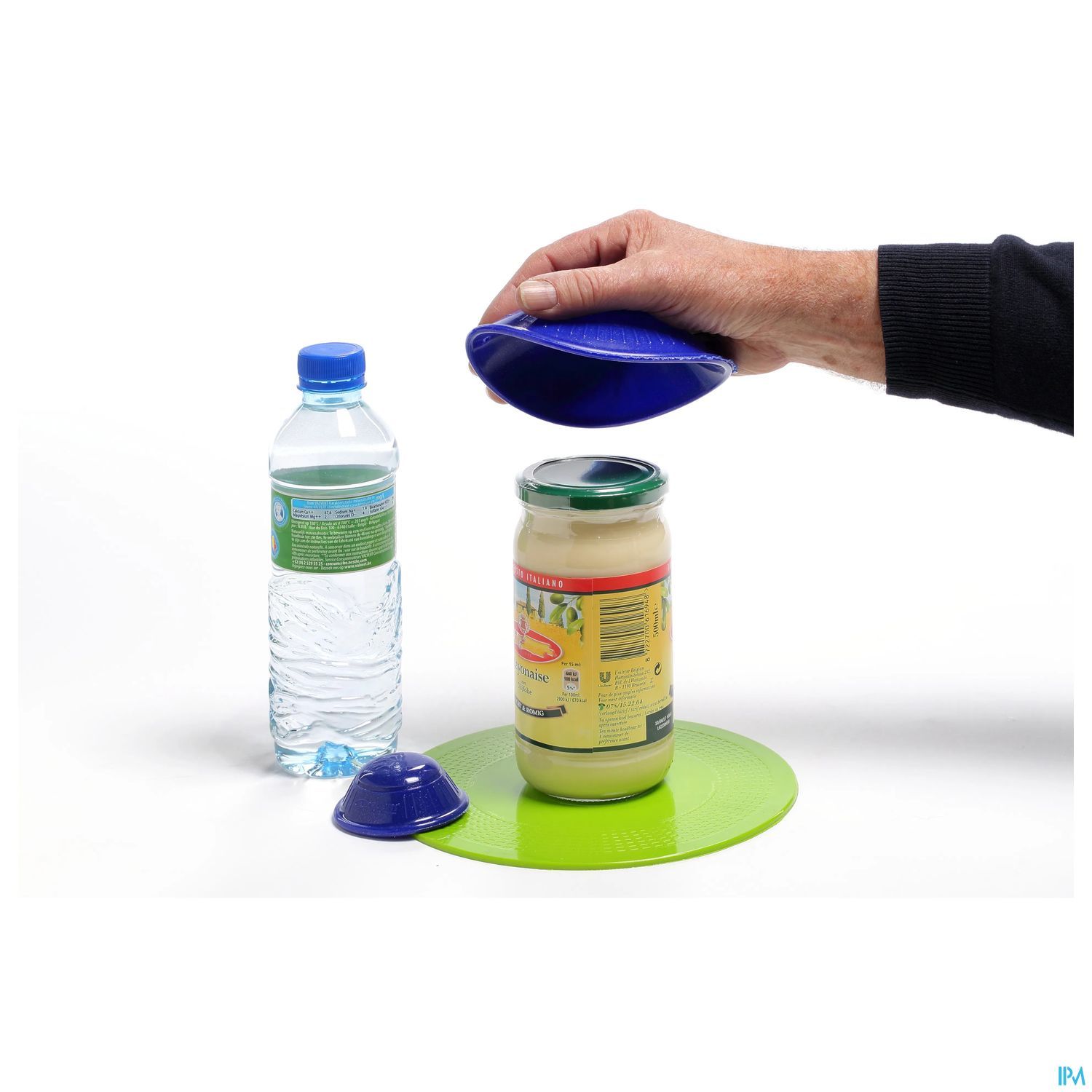 Vooral bedoeld voor mensen met een verminderde krachtgreep, maar in combinatie met een antislipmatje geschikt voor éénhandig gebruik.