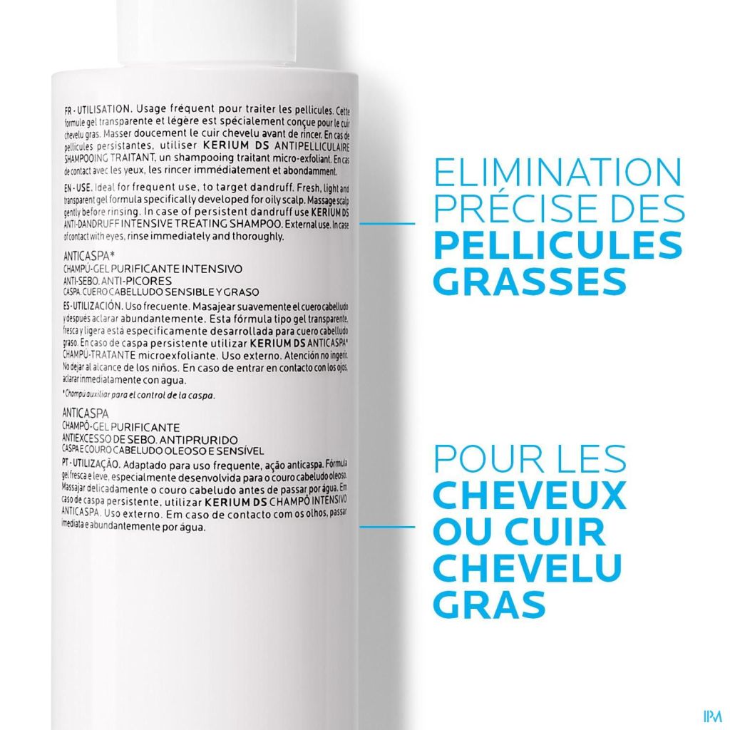 Bij hardnekkige schilfertjes gebruikt u Kerium DS Intensief micro-exfoliërende kuurshampoo tegen haarroos.