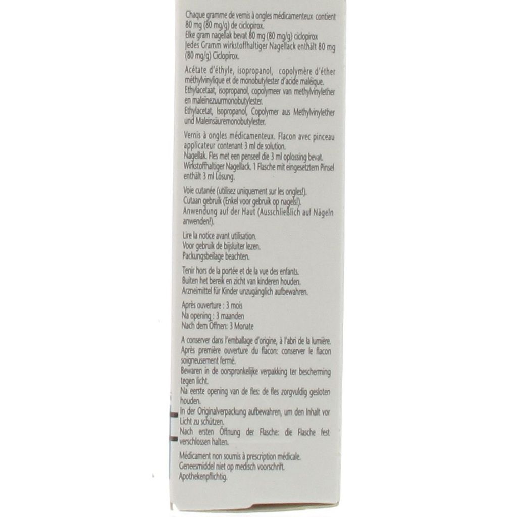 Elke gram nagellak bevat 80 mg (80 mg/g) ciclopirox.