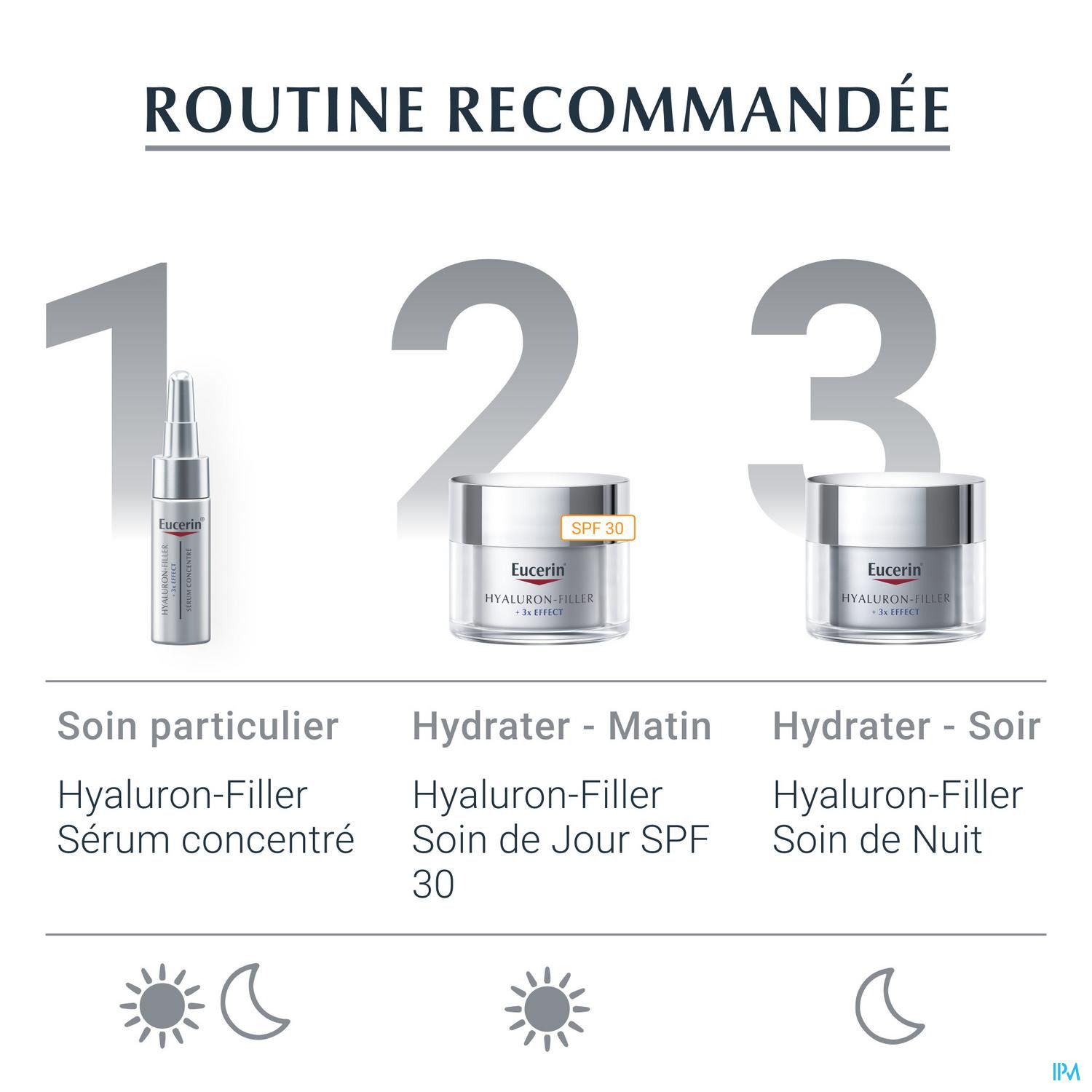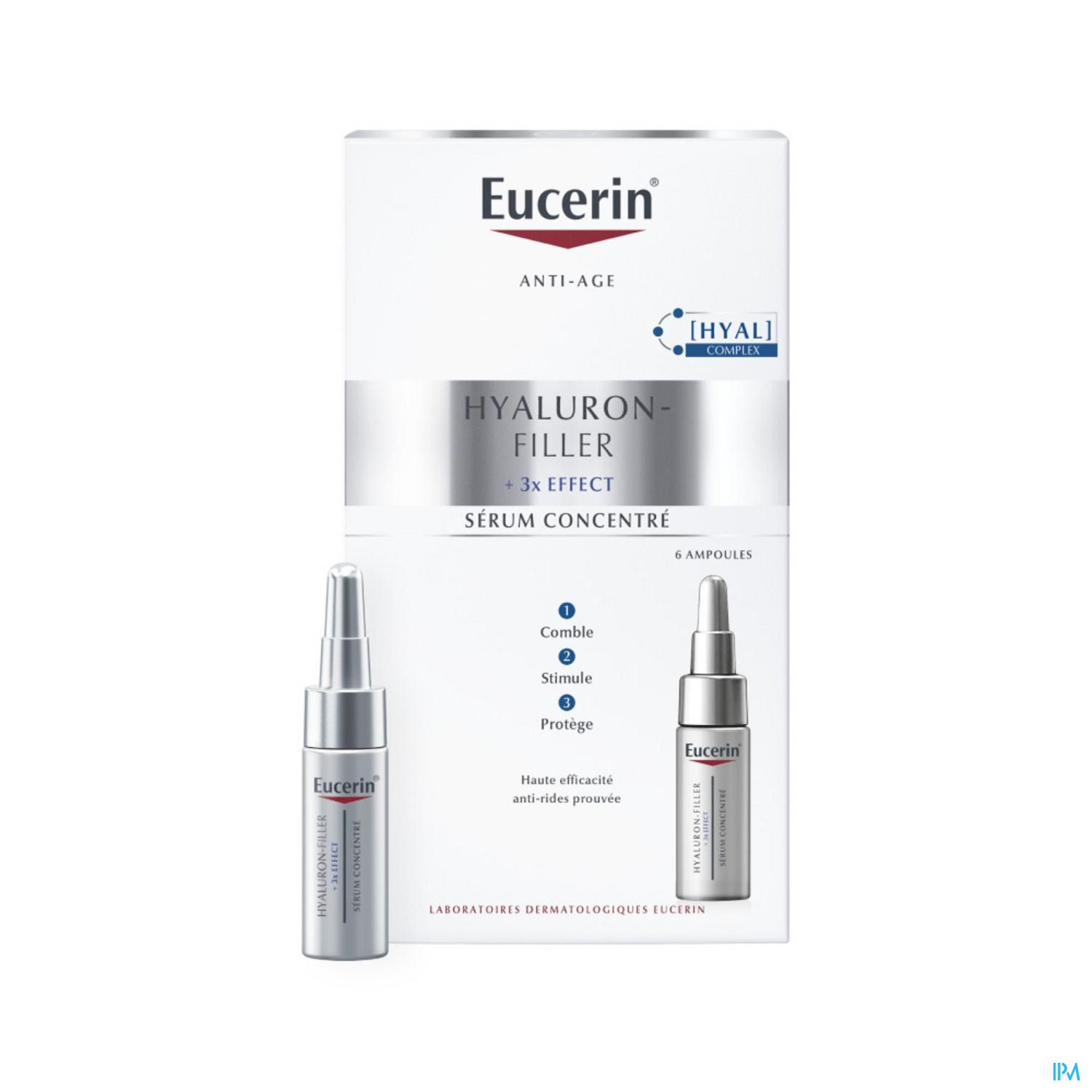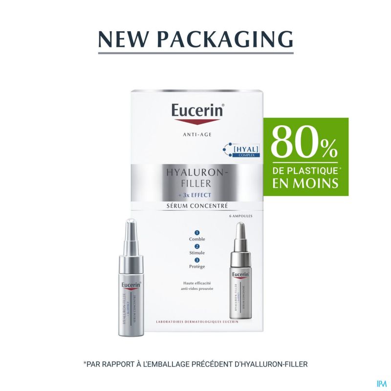 Eucerin Hyaluron-Filler Concentraat is een intensief antirimpelserum dat kan worden gebruikt in combinatie met de dagelijkse antiverouderingsverzorging. De formule combineert hoog en laag gefragmenteerd moleculair hyaluronzuur dat zich richt op de ouder wordende huid waar rimpels ontstaan en bevat daarnaast bioactief glycine-saponine om de natuurlijke aanmaak van hyaluronzuur in de huid te ondersteunen. Bij regelmatig gebruik wordt de huid gladder en lijkt jonger.