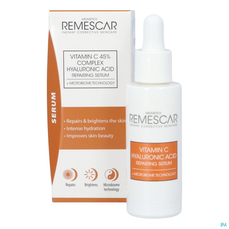 Remescar Herstellend Serum met Vitamine C en Hyaluronzuur heeft als doel donkere vlekken en hyperpigmentatie te verminderen. Het helpt de huid te beschermen tegen UV-stralen en door de zon beschadigde huid te herstellen. Het hoofddoel is het verkrijgen van een gezondere en egalere huid door op een natuurlijke wijze roodheid en onzuiverheden te verminderen.