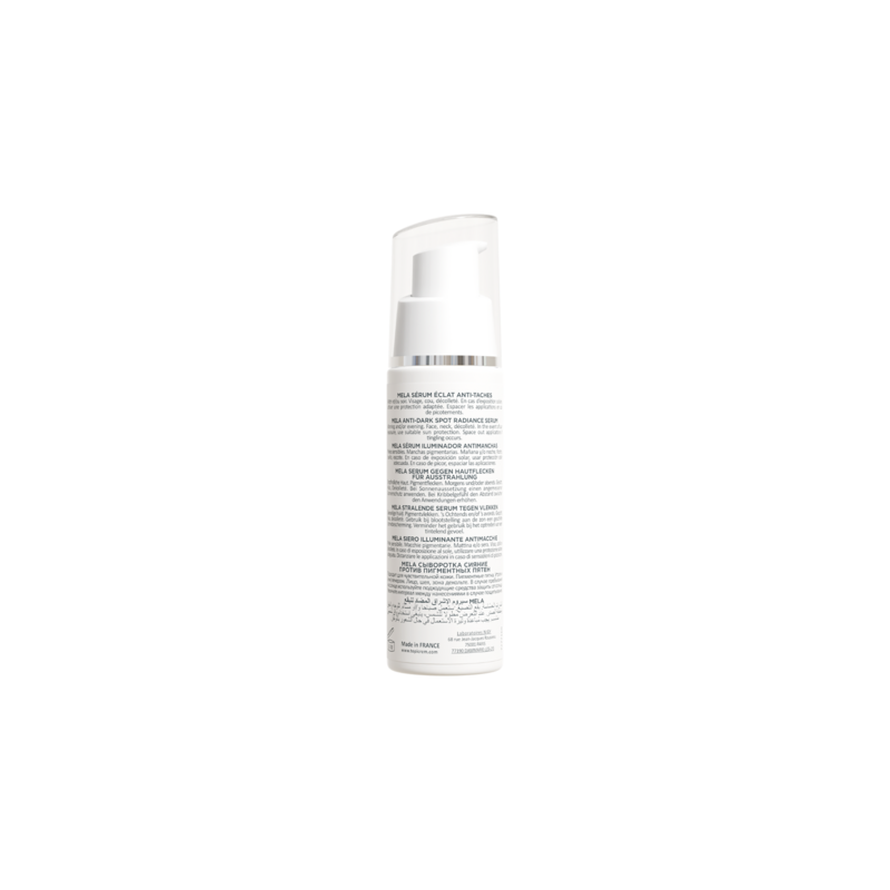 MELA Serum Eclat Anti-Vlekken corrigeert vlekken en voorkomt hun verschijnen voor een meer egale huid vanaf 7 dagen. Dankzij de combinatie van het gepatenteerde MELA-complex en schisandra-bes met een nieuwe, innovatieve werking op de melanogenese-inductoren, biedt dit Anti-Vlekken Serum een intensieve correctie van alle soorten pigmentvlekken, egaliseert het de teint en herstelt het de glans. De frisse, ultralichte en vloeibare textuur hydrateert de huid en is zeer aangenaam aan te brengen.