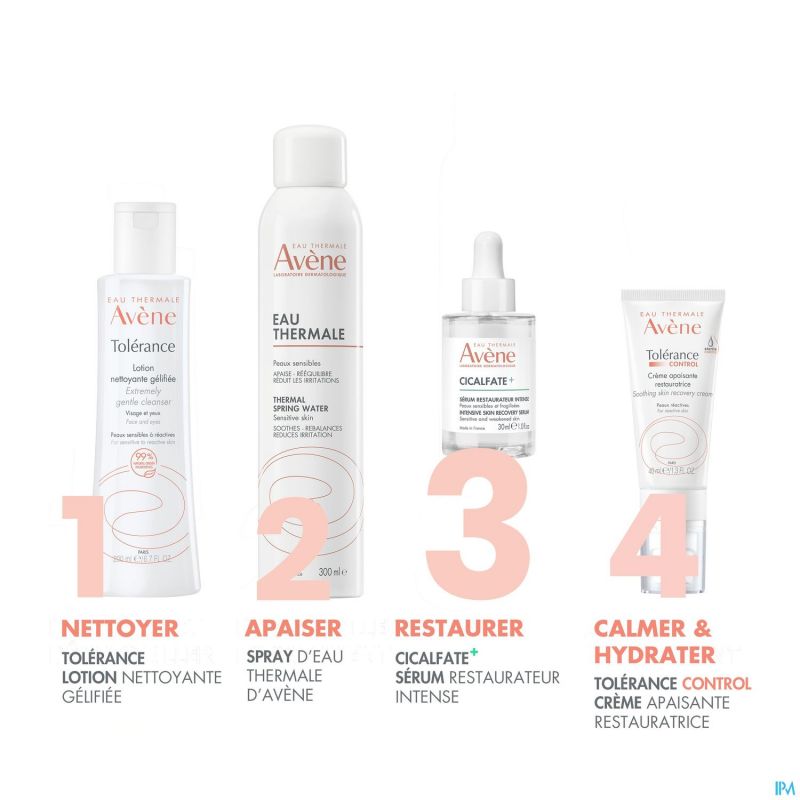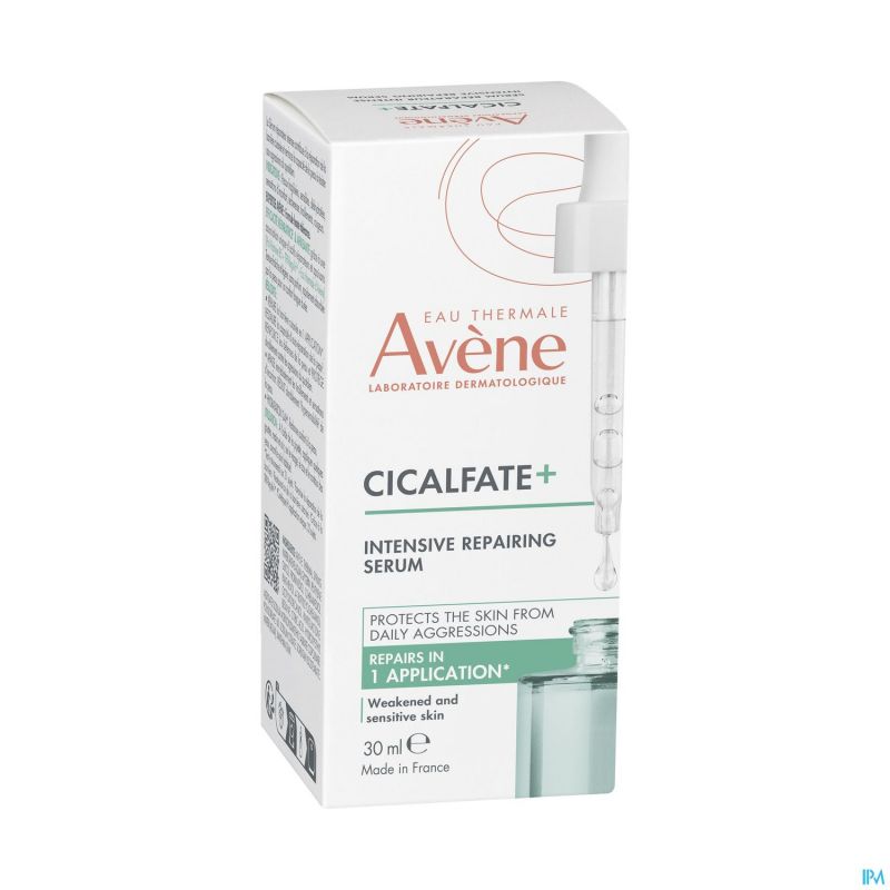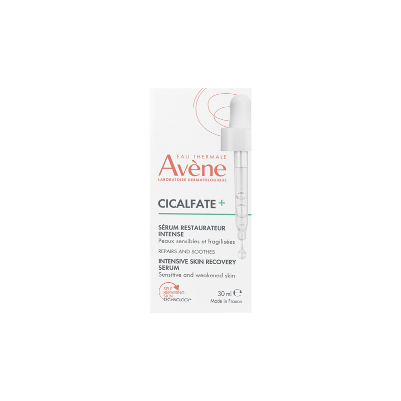 De huid wordt dagelijks overbelast door tal van schadelijke invloeden die haar afweersystemen uitgeputten. De huidbarrière verzwakt en gaat achteruit, wat leidt tot zichtbare tekenen van dehydratatie, droogte, een doffe teint, vlekken en roodheid. Ze voelt onbehaaglijk aan en veroudert voortijdig. EAU THERMALE AVÈNE is gespecialiseerd in huidherstel**** en biedt een innovatief antwoord om de verzwakte huidbarrière te herstellen**** en dag na dag te versterken: CICALFATE+ Intensief herstellend serum. Dit gezichtsserum bevat een hoge concentratie Thermaal water van Avène, Pro-vitamine B5 en TRP-Regulin™ en zal de huidbarrière in 1 dag** herstellen en versterken. Het zelfherstellende vermogen van de huid wordt binnen 3 weken hersteld. De herstelmechanismen van de huid worden duurzaam gecorrigeerd. Een trekkerig gevoel en huidongemak wordt onmiddellijk en langdurig verlicht: 84% minder huidirritatie in 1 week***. Onmiddellijk na het aanbrengen is de roodheid verminderd, voelt de huid minder droog aan en is huidongemak verlicht****. De huid wordt 24 uur lang gehydrateerd*****. Na 3 weken gebruik****** is de huid gekalmeerd en voelt ze soepeler en gladder aan. De huid wordt beschermd tegen dagelijkse agressies. Het bevat 96% aan natuurlijke ingrediënten en is geschikt voor alle huidtypes. De frisse, melkachtige geltextuur heeft een fluweelzachte finish en doet de huid weer comfortabel aanvoelen. Het is de eerste stap in elke huidverzorgingsroutine en kan gedurende 1 maand 's ochtends en 's avonds worden gebruikt als kuur, in combinatie met uw gebruikelijke dagcrème. Gezicht, hals en oogcontour.