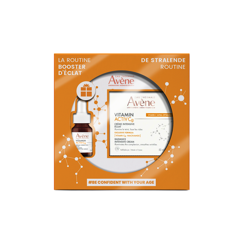 De Laboratoires Dermatologiques Avène hebben de Intensieve crème voor een Stralende Huid gecreëerd, met drie dermatologische werkzame stoffen: [VITAMINE Cg*] 1,8%: erkend om zijn antioxiderende werking die overeenkomt met die van 20% vitamine C** [NIACINAMIDE] 3 %: regenereert de huid op lange termijn en vermindert ouderdomsvlekken [HYALURONZUUR]: zuiver, van natuurlijke oorsprong, hydrateert en maakt de huid gladder en voller De fluweelzachte, subtiel geparfumeerde textuur is mild voor de huid en vormt een goede basis voor make-up. Celveroudering leidt tot een toenemende daling van de weefselfuncties. Bij de huid verschijnen hierdoor klinische kenmerken zoals droge huid, pigmentvlekken, verslapping, rimpels ... Van bij de eerste toepassing is de huid glad en stralend***. Na twee weken: De huid is voller en geregenereerd, de teint is geëgaliseerd***. Na 1 maand: vlekken en rimpels zijn weggewerkt****. Dit product bestaat voor 93 % uit bestanddelen van natuurlijke oorsprong. Het bevat geen dierlijke ingrediënten en komt in een navulbare glazen pot.