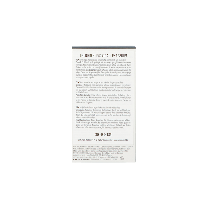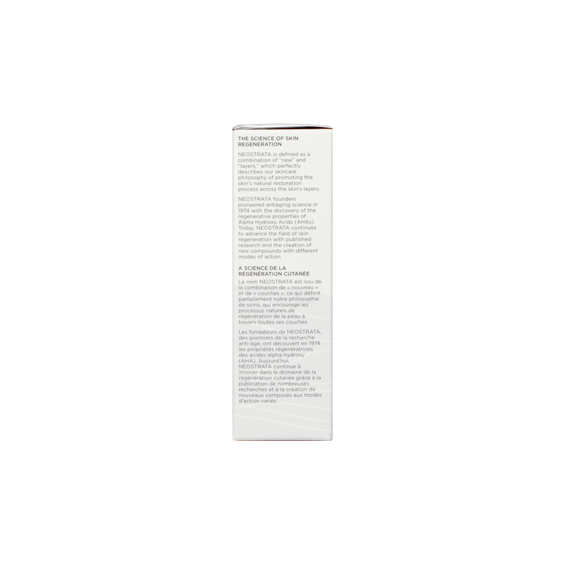 Met dit sterk ophelderende serum heeft NEOSTRATA de lat een stuk hoger gelegd, want het bevat maar liefst vier krachtige antioxidanten (vitamine C, polyhydroxyzuur, extract van moederkruid en groene thee) die de huid na amper één week doen stralen! Na 4 weken zijn er zichtbaar minder rimpels en lijntjes te bespeuren, na 12 weken ziet de huid er opvallend helderder, egaler en jonger uit.