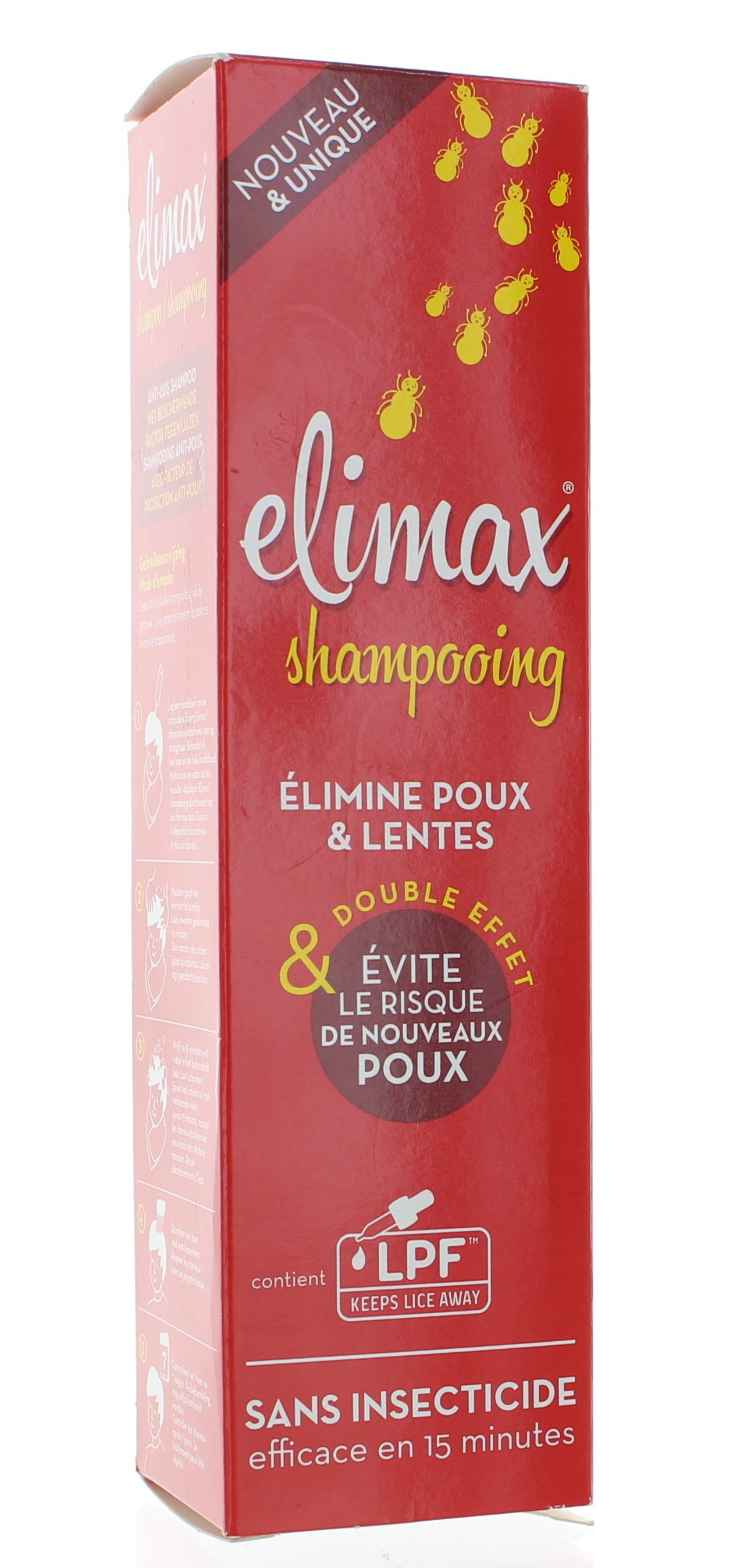 Elimax® shampoo is een transparante vloeistof die bestaat uit speciaal ontwikkelde olie en een beschermende factor tegen luizen (LPF®). De speciale polymeerolie werd specifiek geselecteerd voor een maximale werking tegen hoofdluizen. De olie heeft een dubbele werking: het blokkeert de luchtwegen van de luis en droogt de huid van het insect uit waardoor ze verschrompelt. Elimax® shampoo bevat geen neurotoxische insecticiden, dus er is geen risico op de ontwikkeling van weerstand. Elimax® shampoo bevat geen silicone (dimethicone) en laat dus geen vet achter in het haar. Voor een maximale bescherming tegen nieuwe luizen bevat Elimax® shampoo LPF®. Deze factor maakt het haar onaantrekkelijk voor luizen. Haar dat met Elimax® shampoo werd behandeld, zal minder snel worden besmet door nieuwe luizen.
