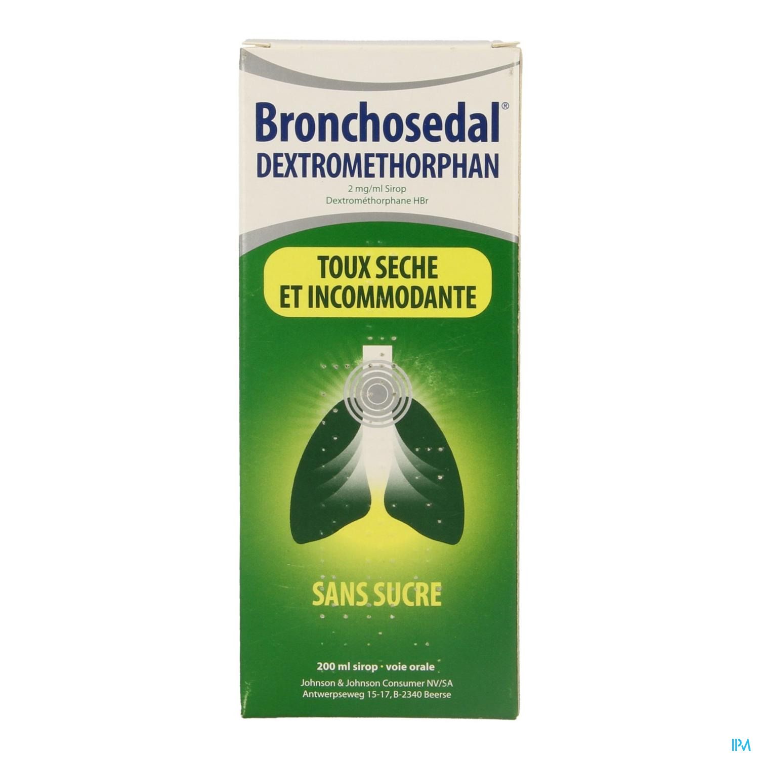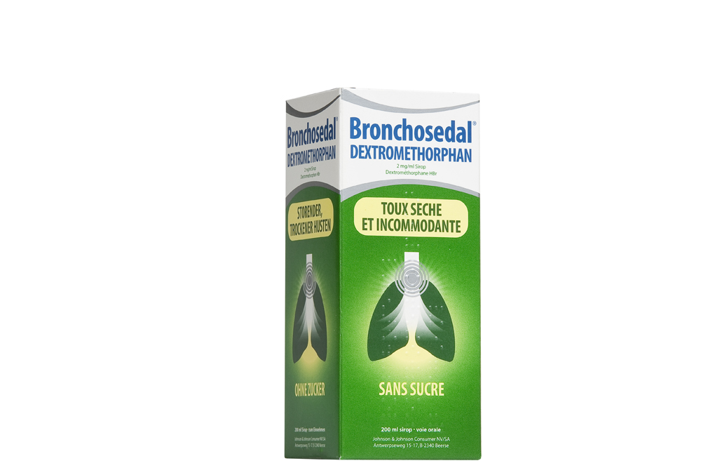 Bronchosedal® Dextromethorphan is een siroop voor oraal gebruik zonder suiker om de symptomen van een droge prikkelhoest bij volwassenen en kinderen vanaf zes jaar te verminderen. Een droge hoest, prikkel- of kriebelhoest kan u uit uw slaap houden en belemmeren bij uw dagelijkse bezigheden. Bronchosedal® Dextromethorphan onderdrukt de droge hoest, waardoor pijn ter hoogte van de borstkas wordt gereduceerd. Het effect van de siroop is 15 tot 30 minuten na inname merkbaar en houdt - afhankelijk van de klachten - drie tot zes uur aan. Bronchosedal® Dextromethorphan is suikervrij en geschikt voor diabetici. De siroop vermindert luchtwegirritatie en remt de droge hoestbuien, ook 's nachts.