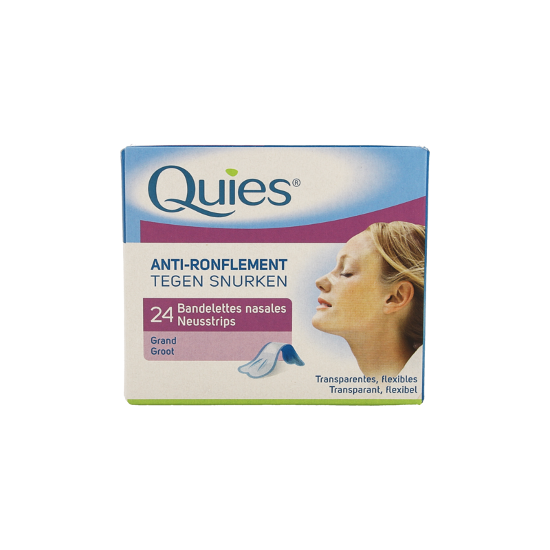 Snurken mag dan wel een ware last zijn voor de naasten van de snurker, ook voor de snurker zelf is het geen cadeau, want zijn slaap is minder herstellend. De strips van Quies tegen het snurken verschaffen hem onmiddellijk een gevoel van een vrijere ademhaling, waardoor het snurken wordt verminderd.Deze strips, die soepel en zeer comfortabel zijn, verwijden zachtjes de neusvleugels voor een betere luchtstroom en meer ademhalingscomfort. Op die manier bevorderen ze de ademhaling via de neus en niet via de mond, die altijd luider is.