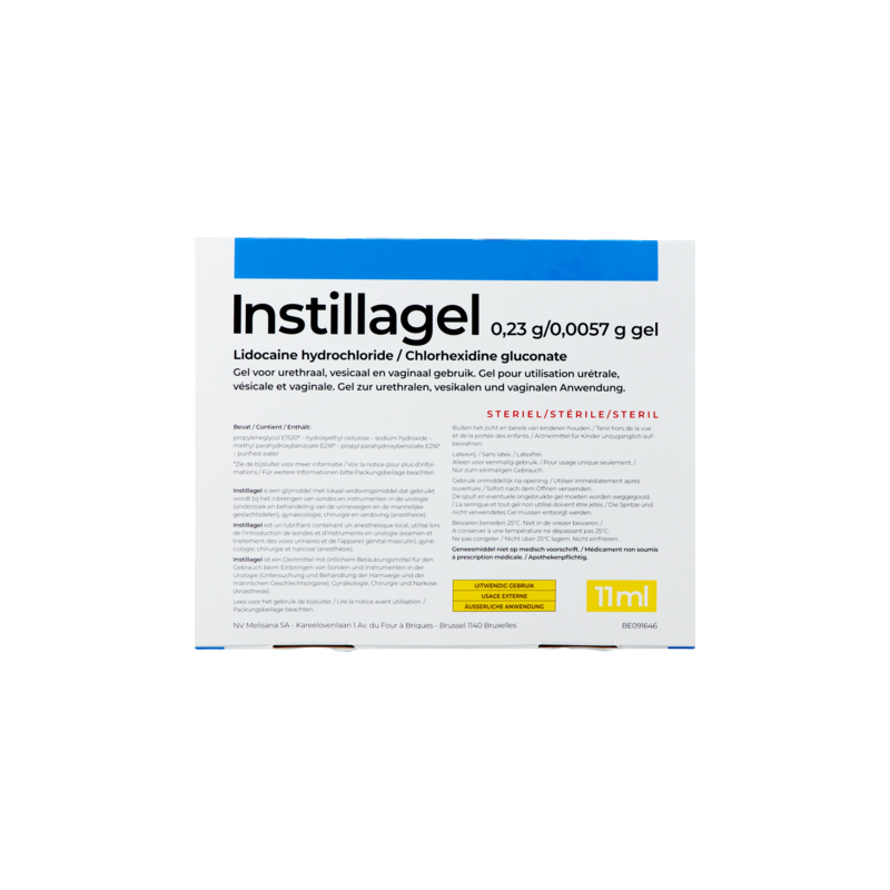 Instillagel mag enkel gebruikt worden als glijmiddel voor de genoemde indicaties en mag niet in de bloedvaten (intravasculair) of in de spieren (intramusculair) ingespoten worden. De afloop kan fataal zijn.