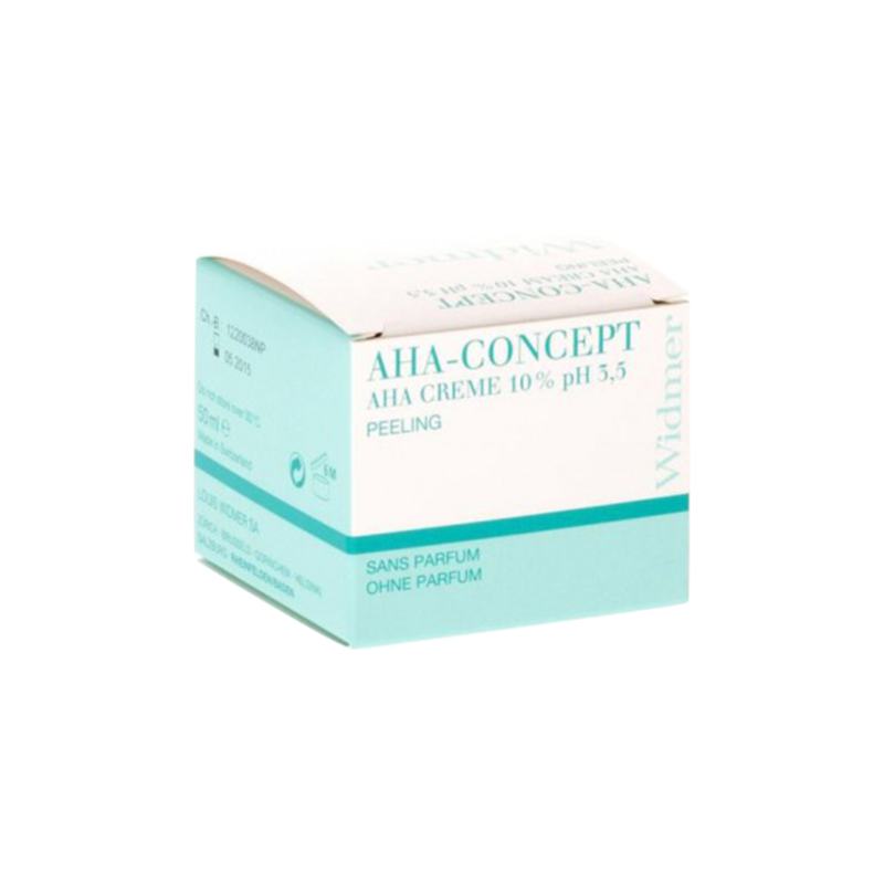 De AHA Crème van Louis Widmer is een uiterst doeltreffend verzorgingsproduct geschikt voor alle huidtypes, in het bijzonder voor de vette en gemengde huid.Ze verwijdert de afgestorven hoorncellen van de opperhuid en bevordert de regeneratie van de huid die glad en stevig wordt. Kleine onzuiverheden verdwijnen. De AHA zuren (Alpha-Hydroxy-Acids) zijn voornamelijk natuurlijke fruitzuren. De AHA Crème bevat glycolzuur, appelzuur en citroenzuur, welke plantaardige fruitzuren zijn, en melkzuur. Deze fruitzuren bevorderen de celhernieuwing en verbeteren de hydratatie van de huid. Panthenol heeft een kalmerend effect op de gevoelige of geïrriteerde huid. Vitamine E neutraliseert de schadelijke effecten van de vrije radicalen.